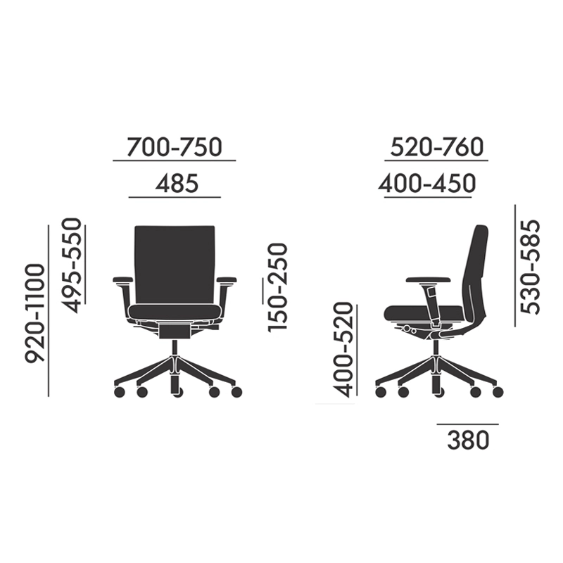 norme d'ergonomie en 1335 - mécanisme synchrone avec inclinaison vers l'avant et réglage individuel de profondeur d'assise - adaptation individuelle de la résistance du dossier - accoudoirs 2d - roulettes sols durs