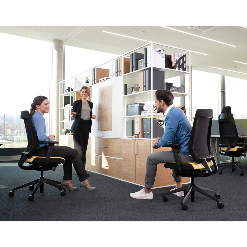 Interstuhl est un siège de bureau simple qui remplit ses exigences et qui, grâce à son utilisation facile, s'adapte aux besoins ergonomiques de tous les postes de travail, que ce soit en open space ou dans un bureau individuel. Quand il s'agit de soutenir des processus de travail nécessitant de la concentration,