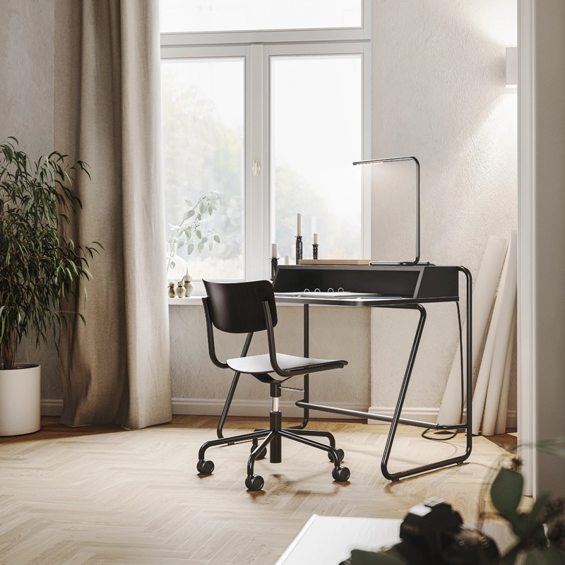 Editée par Thonet, la chaise pivotante S 43 Atelier est une déclinaison de la célèbre chaise S 43 dessinée par Mart Stam en 1931, devenue aujourd’hui une icône du design. La forme pure et discrète de cette chaise perdure dans les nouveaux modèles : lignes claires, esthétique et simplicité des matériaux sont les caractéristiques principales de la chaise pivotante S 43. Que ce soit pour un espace bureau à la maison, un studio de design, une startup, un cabinet d’architecte ou un bureau en open space, la chaise S 43 Atelier peut être utilisée partout où la mobilité et la flexibilité sont essentielles. Le piètement 5 branches à roulettes crée du mouvement dans les environnements statiques avec son caractère agile. Les versions avec accoudoirs et rembourrage offrent encore plus de confort.