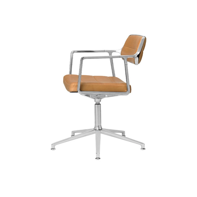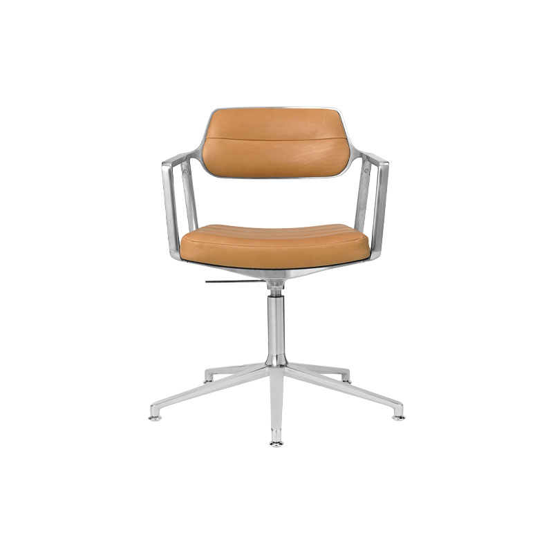 SWIVEL CHAIR 453+ à patins Cuir camel / Aluminium poli