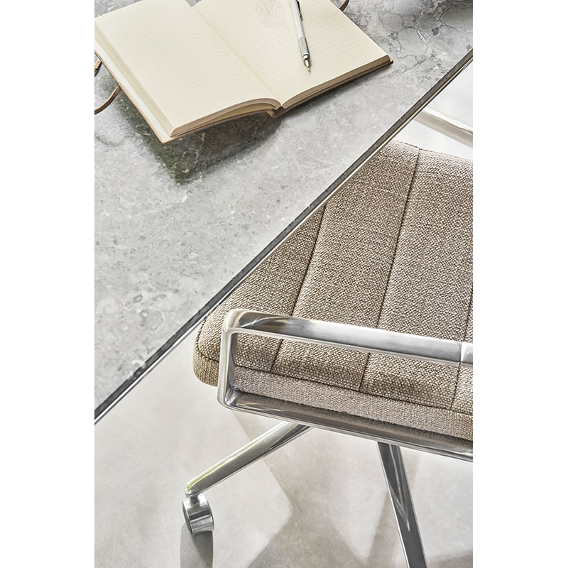 SWIVEL CHAIR 453+ à patins Tissu sable foncé / Aluminium poli