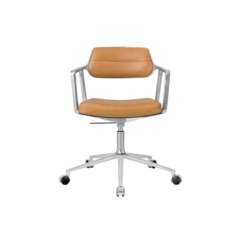 SWIVEL CHAIR 453+ à roulettes Cuir camel / Aluminium poli