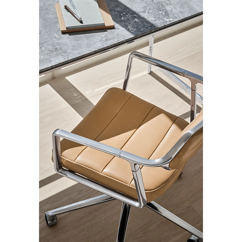 SWIVEL CHAIR 453+ à roulettes Cuir sable / Aluminium poli
