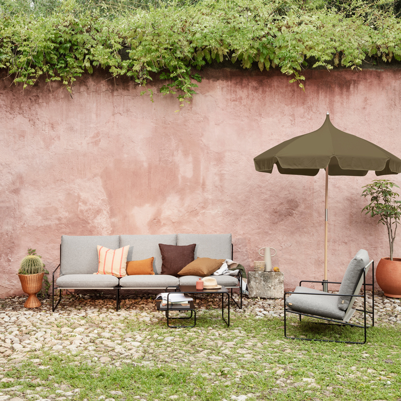 Avec Desert Dolce, Ferm Living propose une collection de sièges rembourrés, parfaits pour créer un espace de convivialité et de détente dans le jardin. Les canapés et fauteuils Desert Dolce ont été conçus pour l’extérieur avec des matériaux et des tissus qui résistent aux intempéries et au soleil. Confortable, fonctionnelle et esthétique, la collection Desert Dolce s’adapte à tous les espaces extérieurs pour profiter pleinement des beaux jours. Elle convient également très bien à une utilisation intérieure.