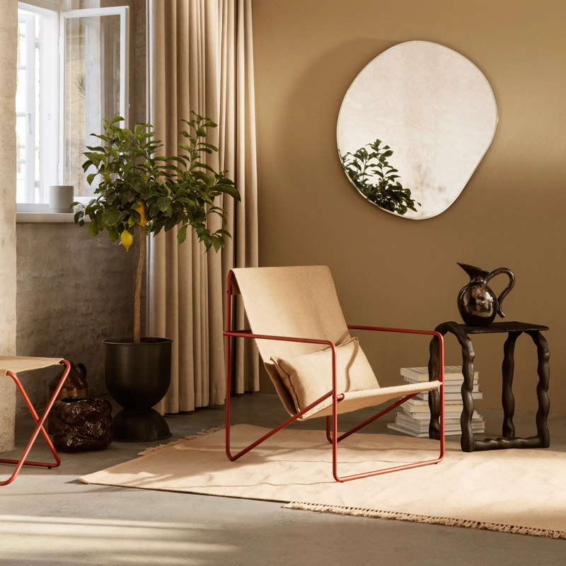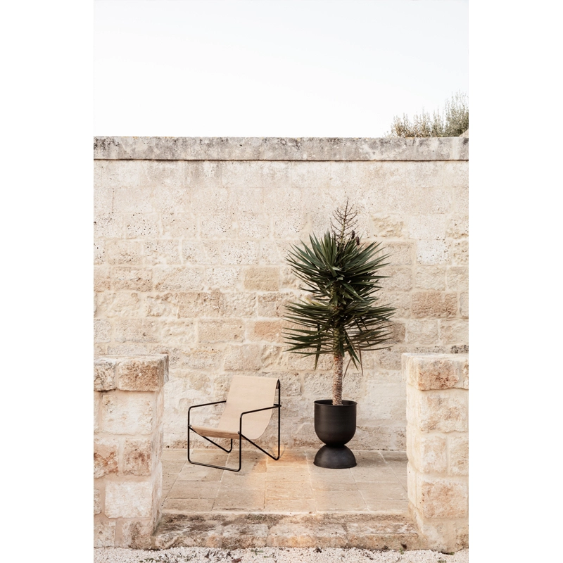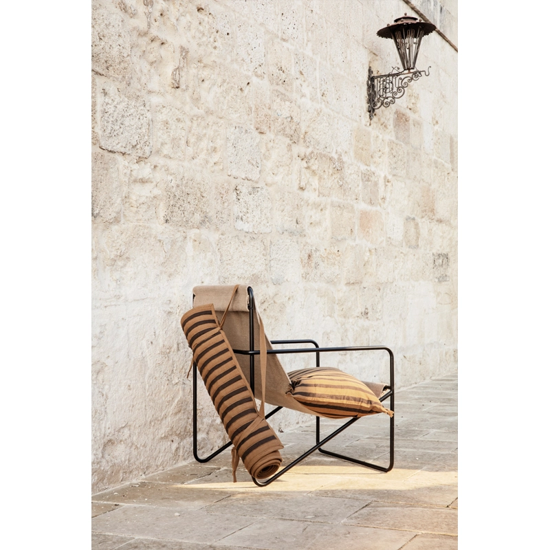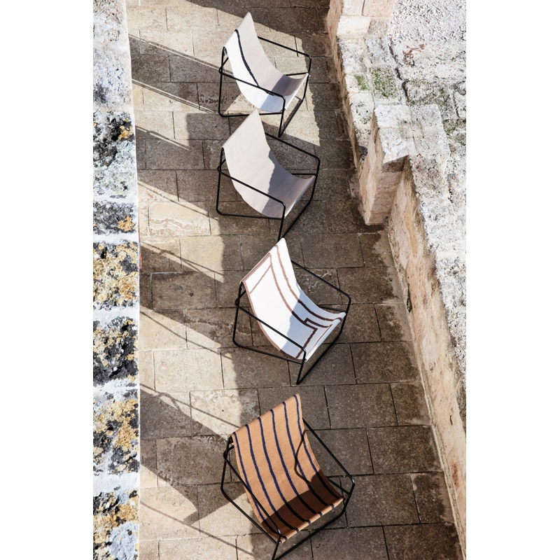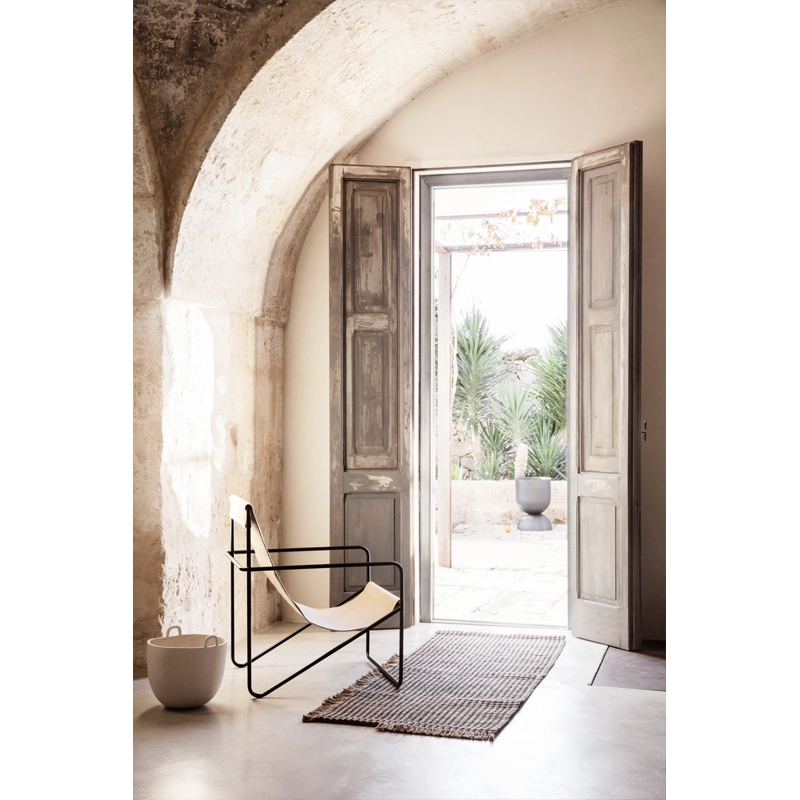 La collection Desert de Ferm Living allie un design moderniste et une fonctionnalité durable pour un fauteuil parfaitement adapté à un usage à l’intérieur comme à l’extérieur. Gracieux et épuré, le fauteuil Desert est doté d’une structure en tube d’acier et d’une assise amovible en toile tissée à la main. Grâce à une technologie spécialisée, les textiles de Desert sont réalisés entièrement à partir de bouteilles en plastique recyclées transformées en fil. Cette technique permet un design incroyablement résistant et durable, tout en réutilisant des déchets. Chaque assise du fauteuil Desert correspond à l’équivalent de 53 bouteilles en plastique. Non seulement ces textiles sont pratiques, facilement lavables et conviennent à une utilisation à l’extérieur, mais ils sont également aussi agréables au toucher, contrairement à ce que l’on pourrait penser d’une matière faite à partir de plastique. Léger et élégant, le fauteuil Desert Ferm Living vit au rythme des saisons, passant facilement de l’intérieur à l’extérieur.