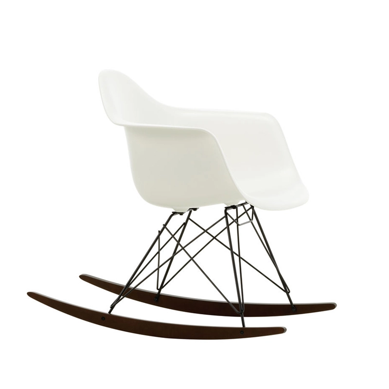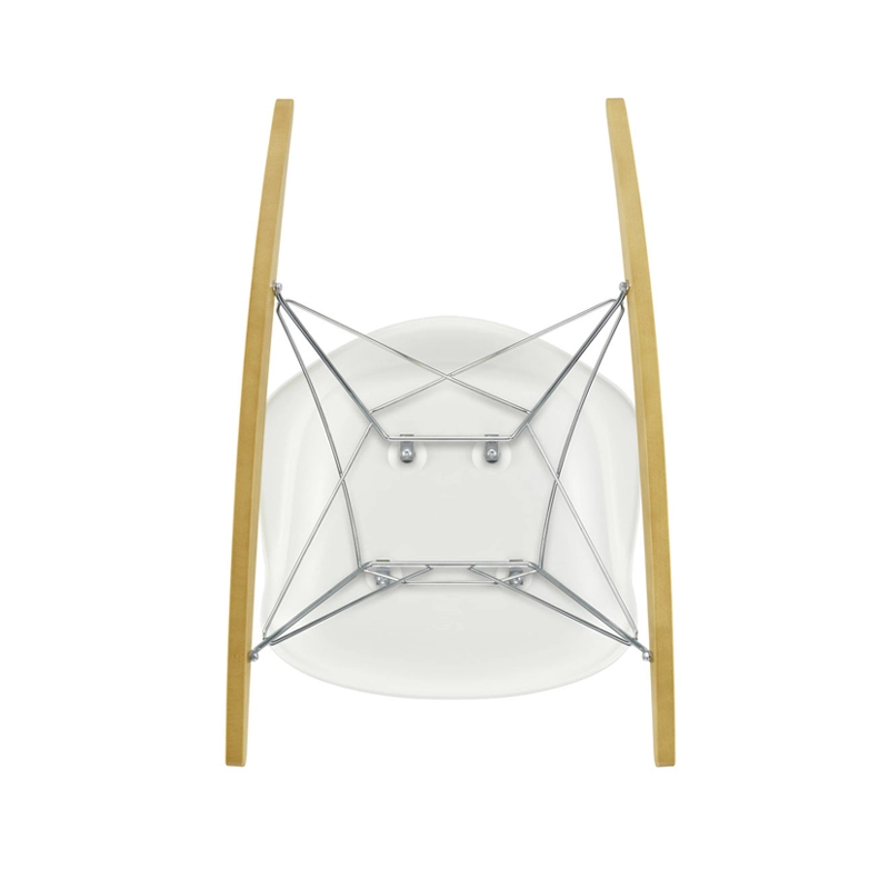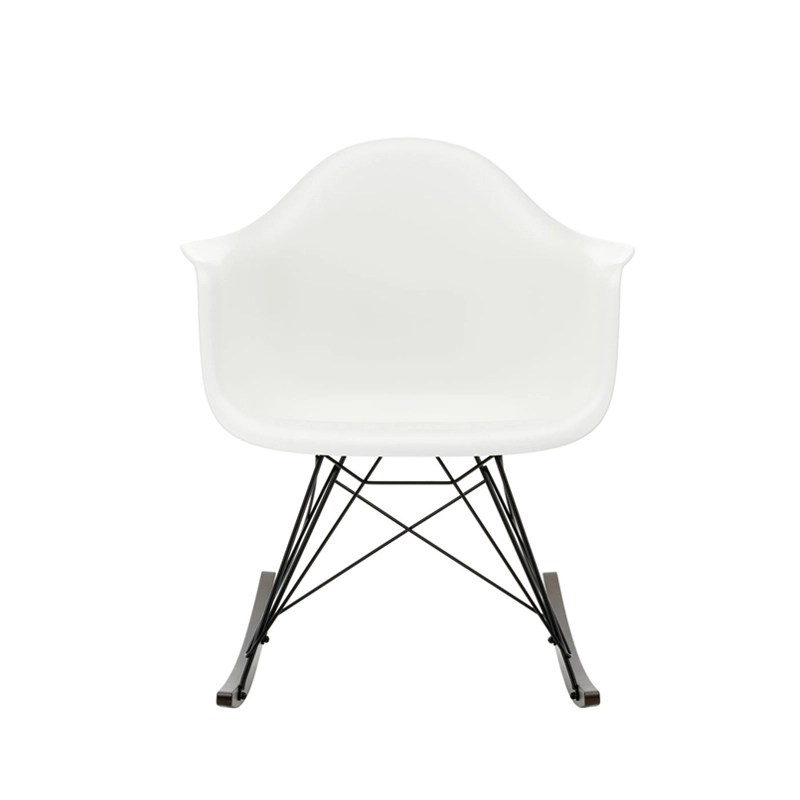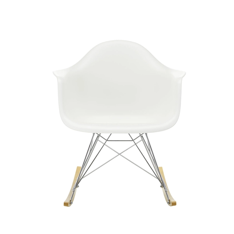 Les Plastic Armchairs ont été présentés pour la première fois par Charles et Ray Eames dans le cadre du concours   « Low Cost Furniture Design » organisé par le Museum of Modern Art de New York. Ces petits fauteuils à bascule furent édités pour la première fois en 1950. La coque aux lignes organiques, en matière synthétique, très confortable, a été combinée par la suite à plusieurs piètements différents. Sur ce modèle de fauteuil RAR à bascule, elle est associée à quatre pieds en croisillons de fil d'acier fixés sur deux patins de bois. Dans leur version actuelle en polypropylène, les Eames Plastic Armchairs RAR (Rocking Armchair Rod base) offrent un confort encore amélioré. Edités par Vitra, ces fauteuils accueillants et confortables sont déclinés dans plusieurs couleurs et trouveront une place dans de nombreuses pièces de votre maison.