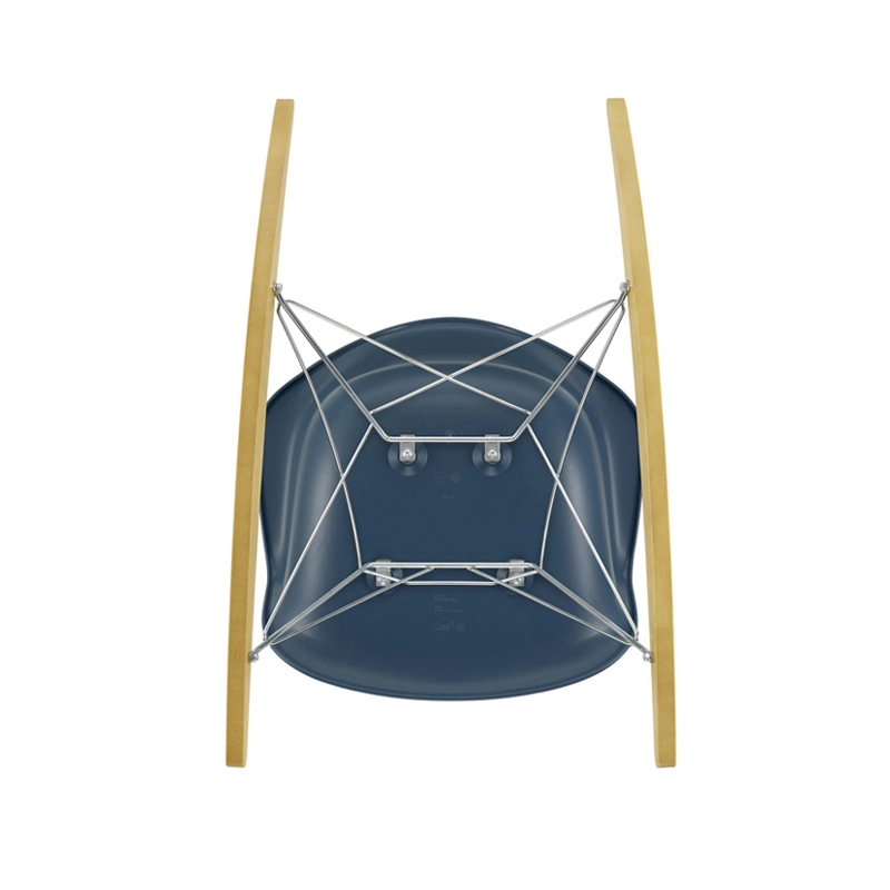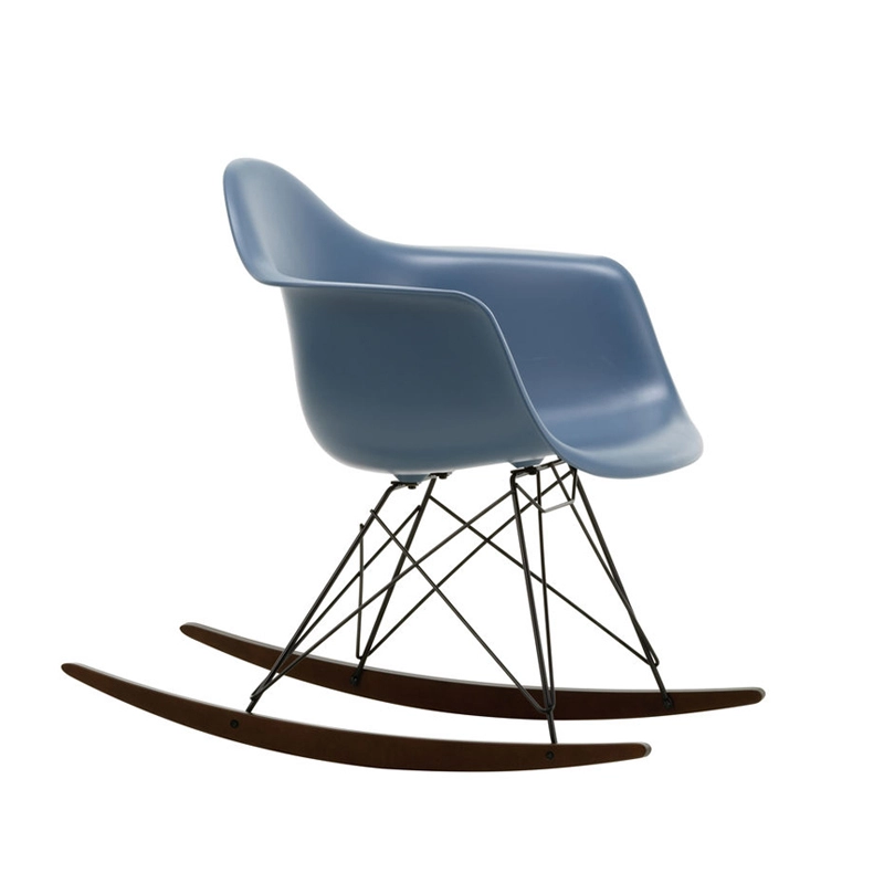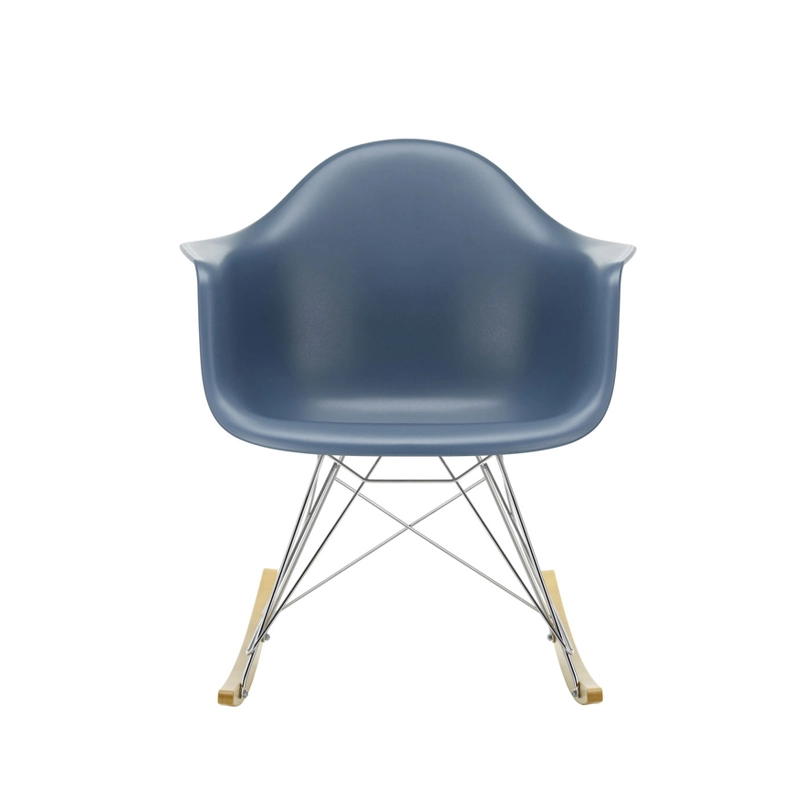 Les Plastic Armchairs ont été présentés pour la première fois par Charles et Ray Eames dans le cadre du concours   « Low Cost Furniture Design » organisé par le Museum of Modern Art de New York. Ces petits fauteuils à bascule furent édités pour la première fois en 1950. La coque aux lignes organiques, en matière synthétique, très confortable, a été combinée par la suite à plusieurs piètements différents. Sur ce modèle de fauteuil RAR à bascule, elle est associée à quatre pieds en croisillons de fil d'acier fixés sur deux patins de bois. Dans leur version actuelle en polypropylène, les Eames Plastic Armchairs RAR (Rocking Armchair Rod base) offrent un confort encore amélioré. Edités par Vitra, ces fauteuils accueillants et confortables sont déclinés dans plusieurs couleurs et trouveront une place dans de nombreuses pièces de votre maison.