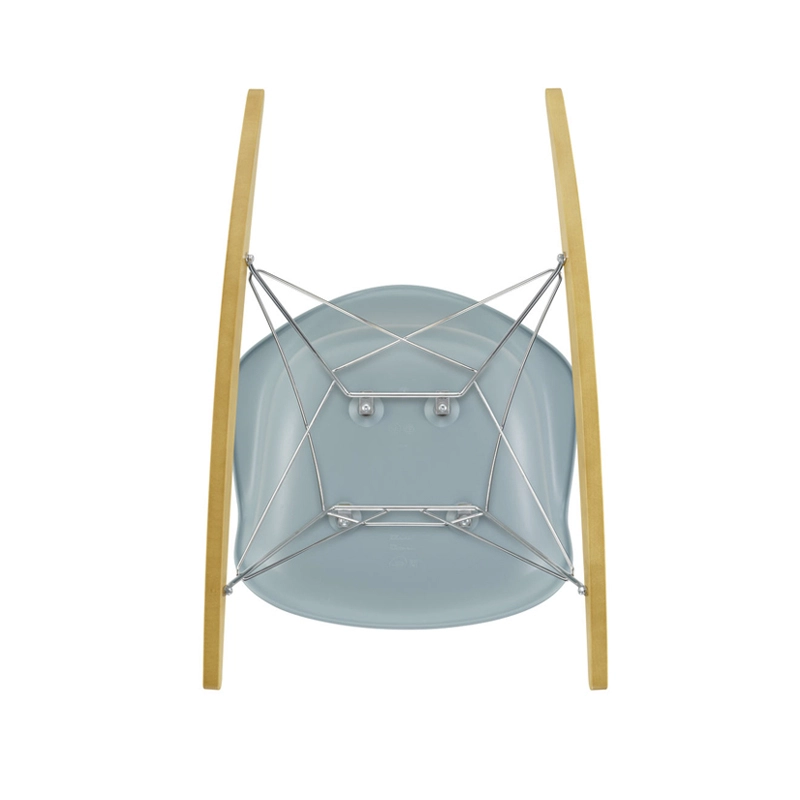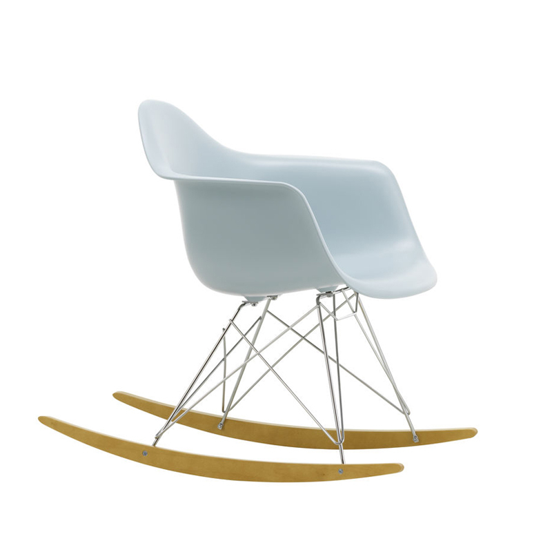 Les Plastic Armchairs ont été présentés pour la première fois par Charles et Ray Eames dans le cadre du concours   « Low Cost Furniture Design » organisé par le Museum of Modern Art de New York. Ces petits fauteuils à bascule furent édités pour la première fois en 1950. La coque aux lignes organiques, en matière synthétique, très confortable, a été combinée par la suite à plusieurs piètements différents. Sur ce modèle de fauteuil RAR à bascule, elle est associée à quatre pieds en croisillons de fil d'acier fixés sur deux patins de bois. Dans leur version actuelle en polypropylène, les Eames Plastic Armchairs RAR (Rocking Armchair Rod base) offrent un confort encore amélioré. Edités par Vitra, ces fauteuils accueillants et confortables sont déclinés dans plusieurs couleurs et trouveront une place dans de nombreuses pièces de votre maison.