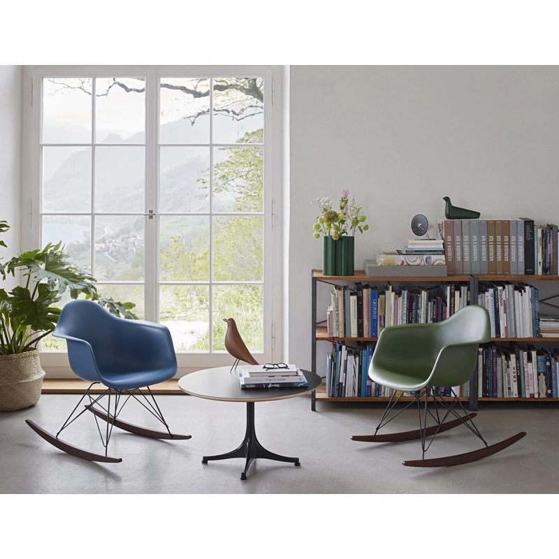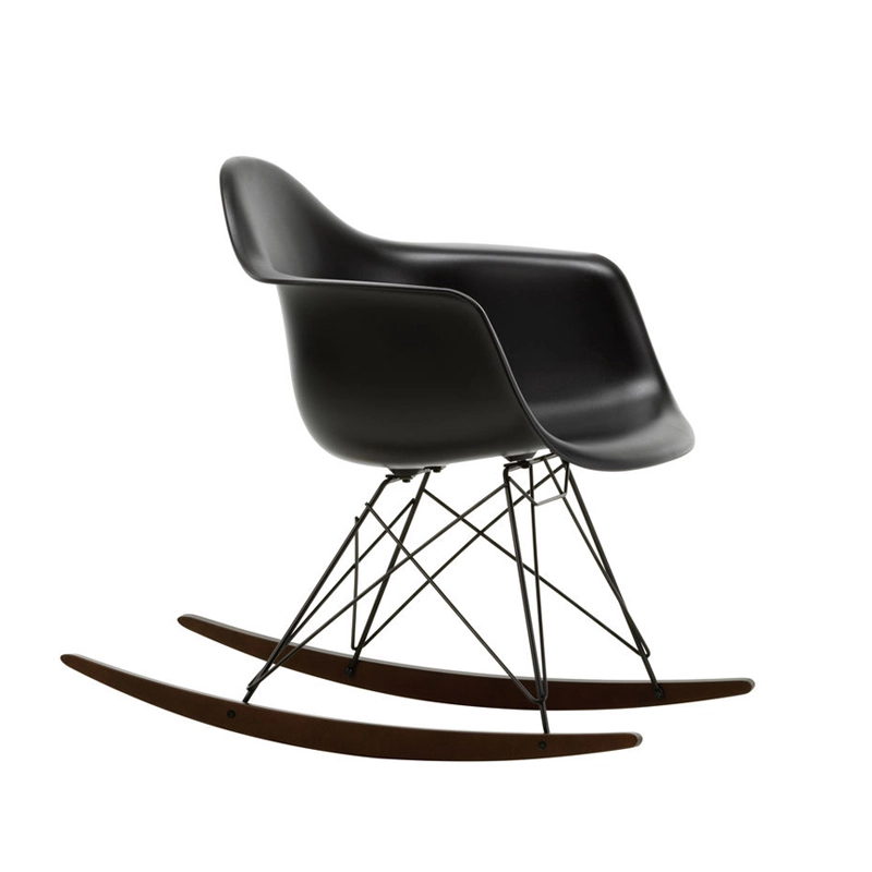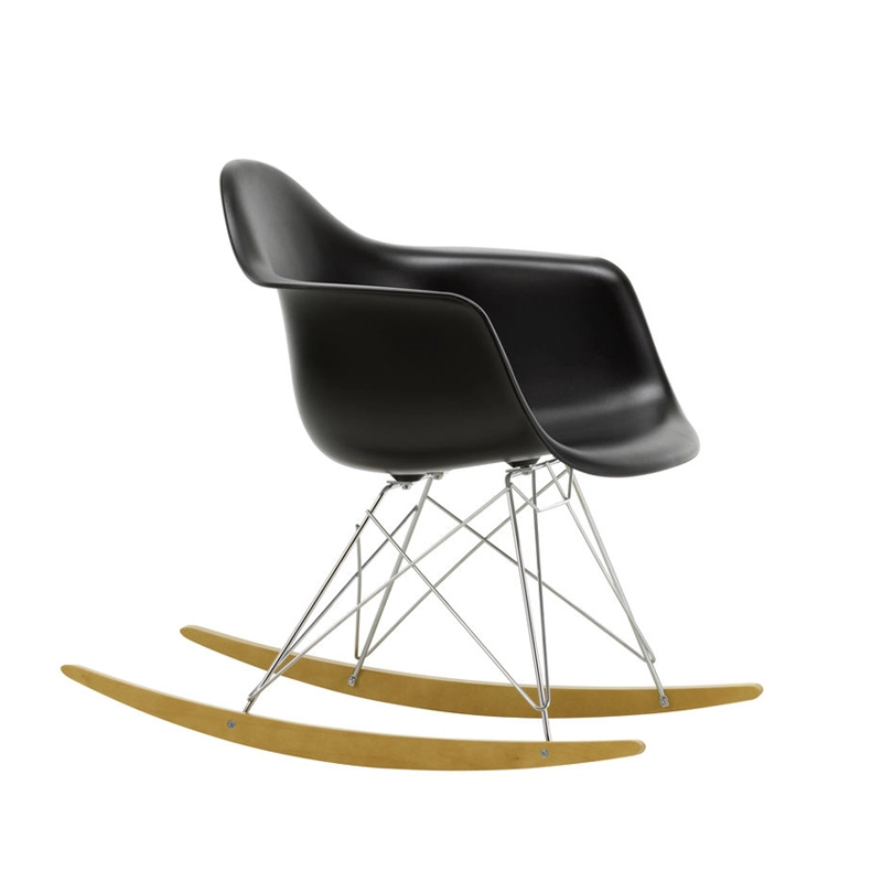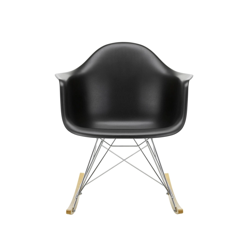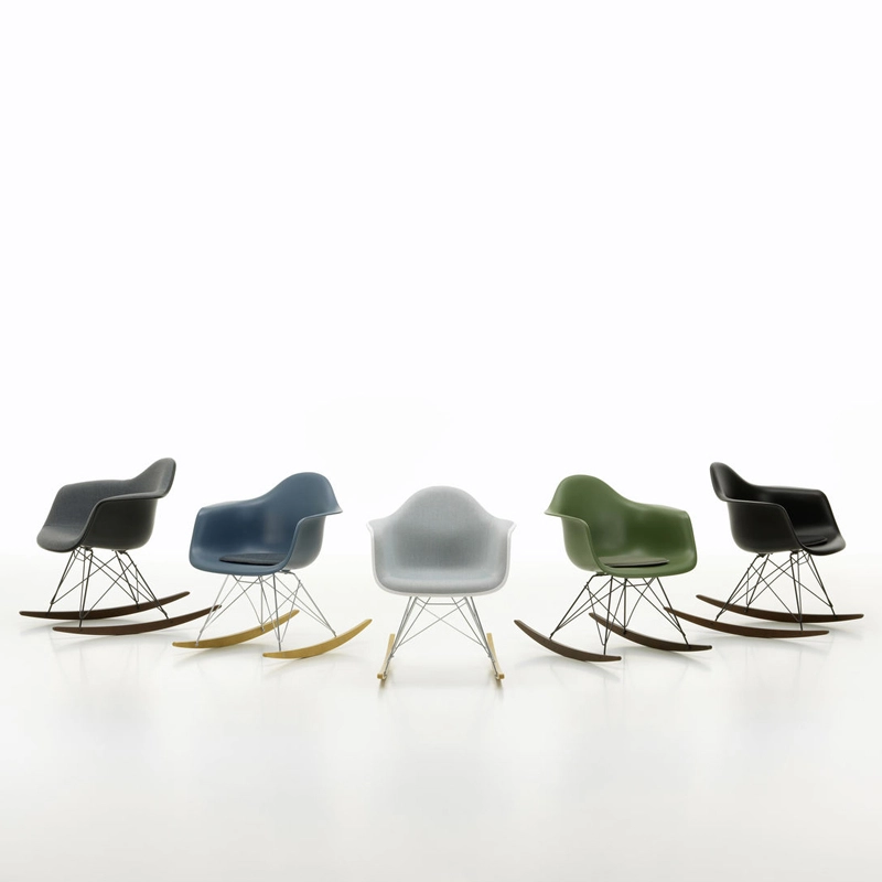 Les Plastic Armchairs ont été présentés pour la première fois par Charles et Ray Eames dans le cadre du concours   « Low Cost Furniture Design » organisé par le Museum of Modern Art de New York. Ces petits fauteuils à bascule furent édités pour la première fois en 1950. La coque aux lignes organiques, en matière synthétique, très confortable, a été combinée par la suite à plusieurs piètements différents. Sur ce modèle de fauteuil RAR à bascule, elle est associée à quatre pieds en croisillons de fil d'acier fixés sur deux patins de bois. Dans leur version actuelle en polypropylène, les Eames Plastic Armchairs RAR (Rocking Armchair Rod base) offrent un confort encore amélioré. Edités par Vitra, ces fauteuils accueillants et confortables sont déclinés dans plusieurs couleurs et trouveront une place dans de nombreuses pièces de votre maison.
