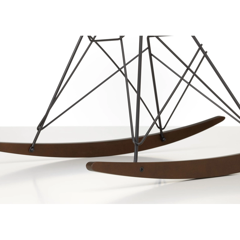 Les Plastic Armchairs ont été présentés pour la première fois par Charles et Ray Eames dans le cadre du concours   « Low Cost Furniture Design » organisé par le Museum of Modern Art de New York. Ces petits fauteuils à bascule furent édités pour la première fois en 1950. La coque aux lignes organiques, en matière synthétique, très confortable, a été combinée par la suite à plusieurs piètements différents. Sur ce modèle de fauteuil RAR à bascule, elle est associée à quatre pieds en croisillons de fil d'acier fixés sur deux patins de bois. Dans leur version actuelle en polypropylène, les Eames Plastic Armchairs RAR (Rocking Armchair Rod base) offrent un confort encore amélioré. Edités par Vitra, ces fauteuils accueillants et confortables sont déclinés dans plusieurs couleurs et trouveront une place dans de nombreuses pièces de votre maison.