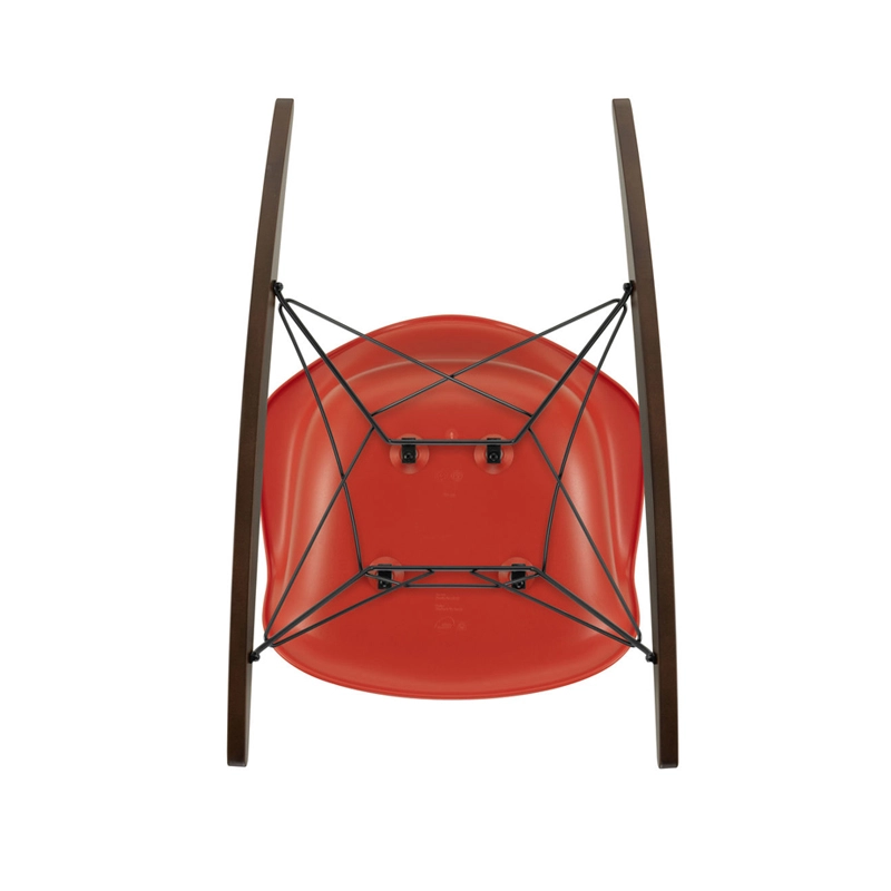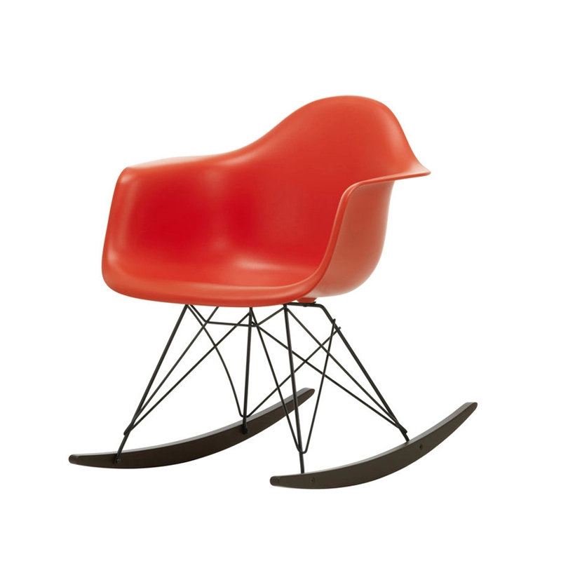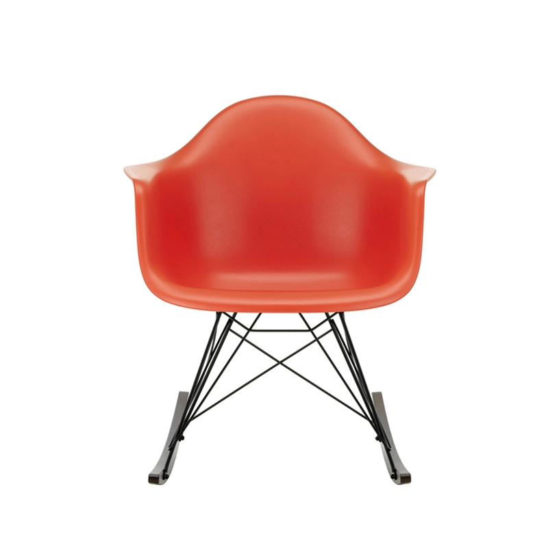 Les Plastic Armchairs ont été présentés pour la première fois par Charles et Ray Eames dans le cadre du concours   « Low Cost Furniture Design » organisé par le Museum of Modern Art de New York. Ces petits fauteuils à bascule furent édités pour la première fois en 1950. La coque aux lignes organiques, en matière synthétique, très confortable, a été combinée par la suite à plusieurs piètements différents. Sur ce modèle de fauteuil RAR à bascule, elle est associée à quatre pieds en croisillons de fil d'acier fixés sur deux patins de bois. Dans leur version actuelle en polypropylène, les Eames Plastic Armchairs RAR (Rocking Armchair Rod base) offrent un confort encore amélioré. Edités par Vitra, ces fauteuils accueillants et confortables sont déclinés dans plusieurs couleurs et trouveront une place dans de nombreuses pièces de votre maison.