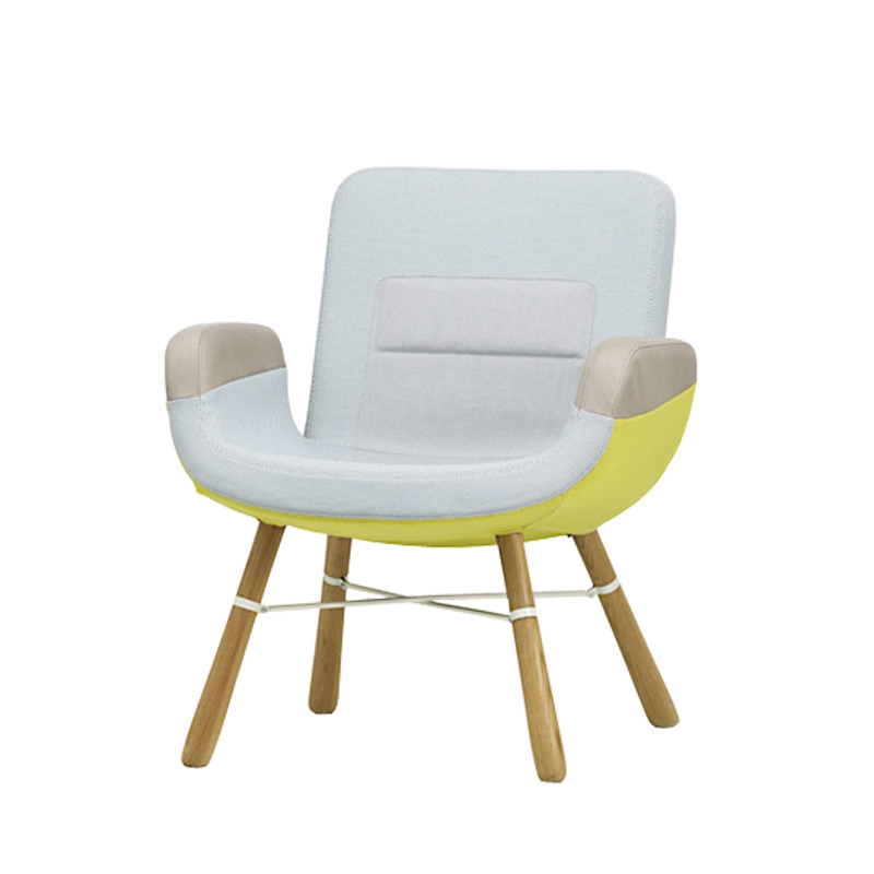 Fauteuil EAST RIVER Jaune/ bleu ciel Pieds naturels VITRA
