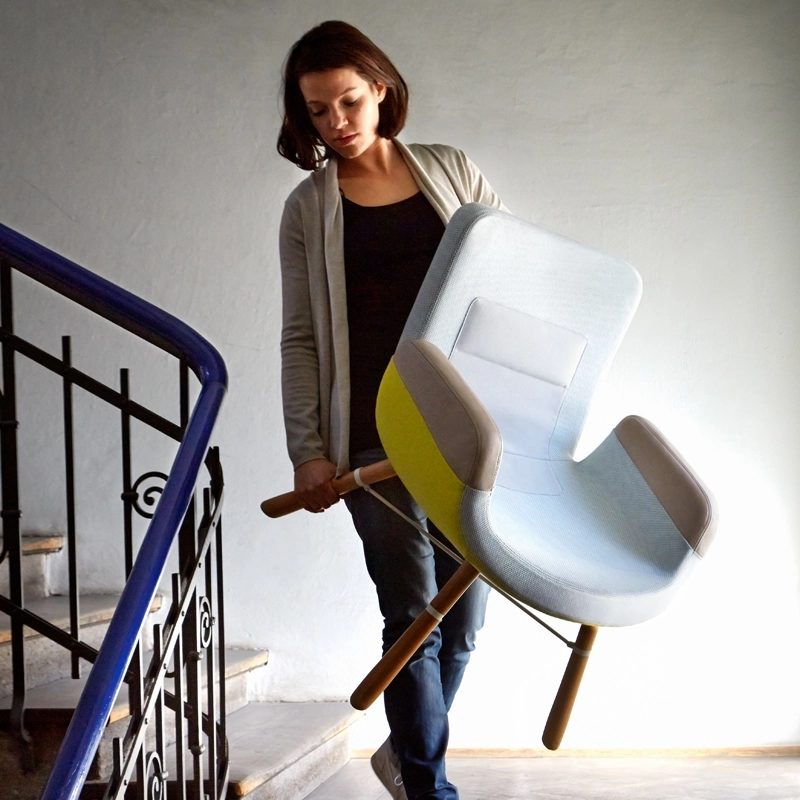 Entre tradition et modernité, artisanat et éléments industriels, le fauteuil East River Chair résume parfaitement le travail de Hella Jongerius. Edité par Vitra, c'est un fauteuil léger aux dimensions réduites qui joue sur l'association des matières et des couleurs. Les mélanges de couleurs qui semblent désinvoltes, sont étudiés pour donner à chaque déclinaison du fauteuil un caractère qui lui est propre. Le choix des associations de matériaux est esthétique mais principalement choisi pour des raisons pratiques : les accoudoirs en cuir sont mieux protégés de l'usure et de la saleté, tandis que l'assise et le dossier sont revêtus de tissu pour plus de douceur. Une sangle à l'arrière du fauteuil invite à le déplacer selon vos envies. East River est un fauteuil compact et attirant qui s'associe facilement à différents styles de meubles dans le salon.