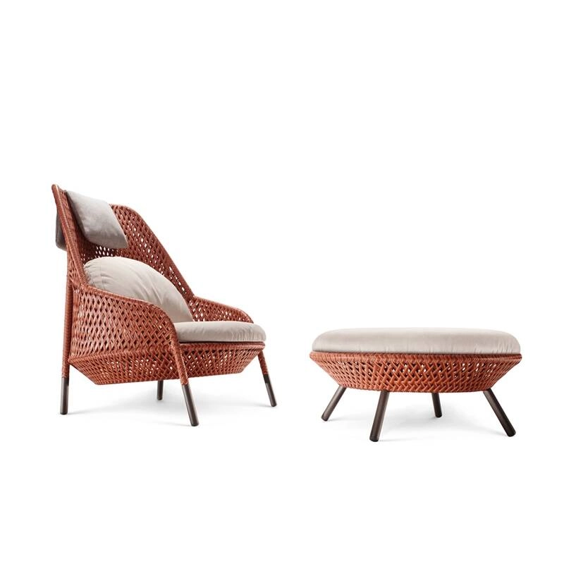 Ahnda est une collection originale de fauteuils d'extérieur, dont le design, l'ergonomie et le confort sont ceux d'un bel objet d'intérieur. Comprenant un canapé deux places, un fauteuil club, un fauteuil bergère et un repose-pied/table basse, Ahnda séduit par son beau tressage ajouré, inspiré par la culture métissée des Philippines. Véritable invitation à la détente, Ahnda possède une inclinaison parfaite qui permet aussi de se reposer que de discuter dans le jardin. Conçue pour résister aux intempéries les plus extrêmes, cette collection outdoor allie parfaitement le fonctionnel et l’esthétique. Le prix ne comprend pas le coussin décoratif (uniquement les coussins d'assise, dossier et appui-tête).