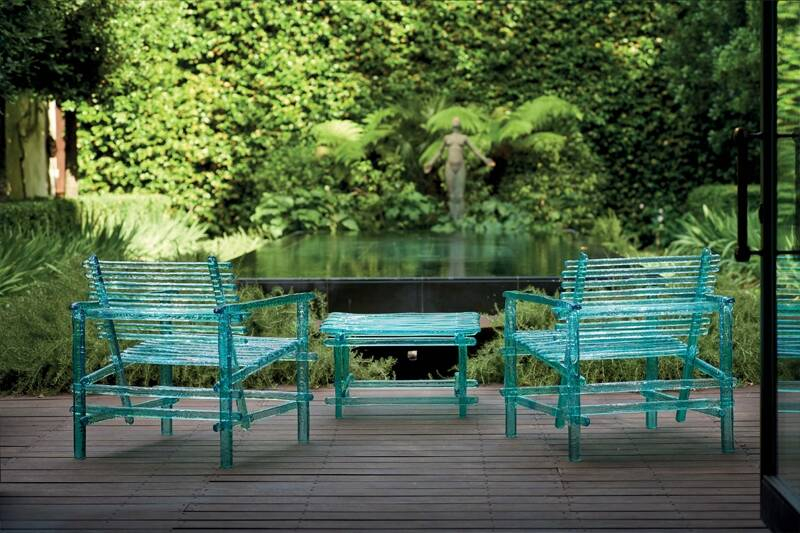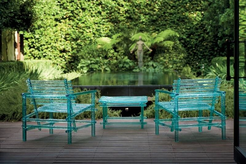 Dessinée par Jacopo Foggini pour la marque Edra, A'mare est une collection de meubles outdoor composée d'une chaise, d'un fauteuil, d'un banc, d'un bain de soleil, d'une table basse et de tables de repas. A travers leurs reflets magiques, la mer et l’eau deviennent les acteurs principaux de l’espace étayé par ces éléments d’ameublement, autant de paysages synonymes de détente, confort et accueil. La collection A’mare Edra s’adapte à toutes les utilisations. Conçue pour durer dans le temps, son esthétique épurée consent notamment à la collection A’mare de s'intégrer aisément dans les espaces intérieurs. Toutes les pièces de la série A’mare sont fabriquées à la main avec des lattes en polycarbonate à la section volontairement irrégulière afin d’obtenir des surfaces hétérogènes perceptibles au toucher uniquement. Les différentes lattes sont assemblées selon une trame élémentaire à l'aide de vis spéciales.