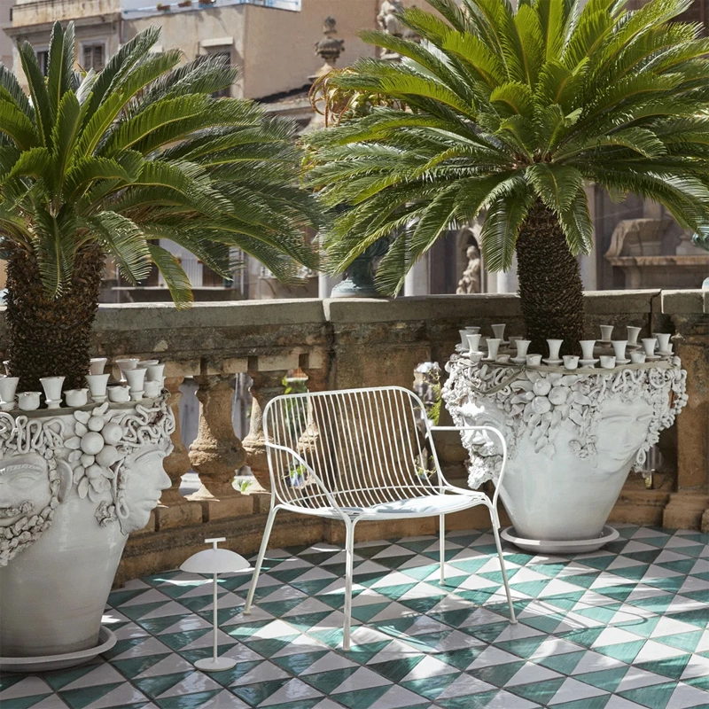 Légère et graphique, Hiray est une collection de meubles pour l’extérieur, dessinée par Ludovica et Roberto Palomba pour la marque italienne Kartell. La collection très complète, comprenant des chaises, fauteuils canapés et tables, se caractérise par son travail du metal avec la technique du fil soudé. Le résultat est un motif essentiel et épuré, également imprégné d’émotion. Conçues pour resister à l’extérieur, les pièces de la collection Hiray Kartell se déclinent en plusieurs couleurs, qui se marient très bien ensemble. Pour les assises, des cousins adaptés sont également disponibles.