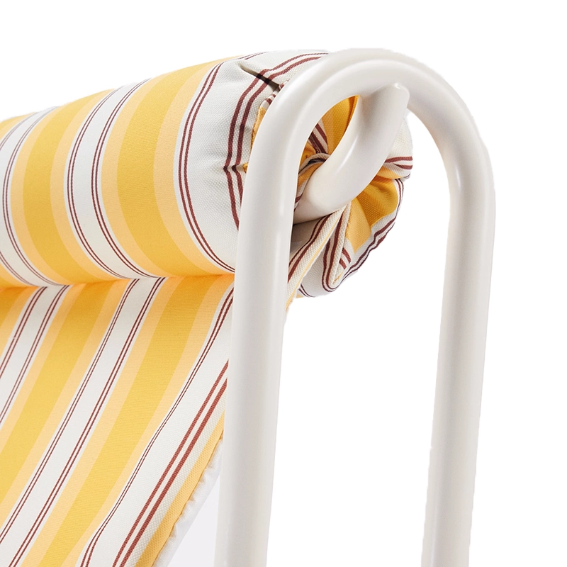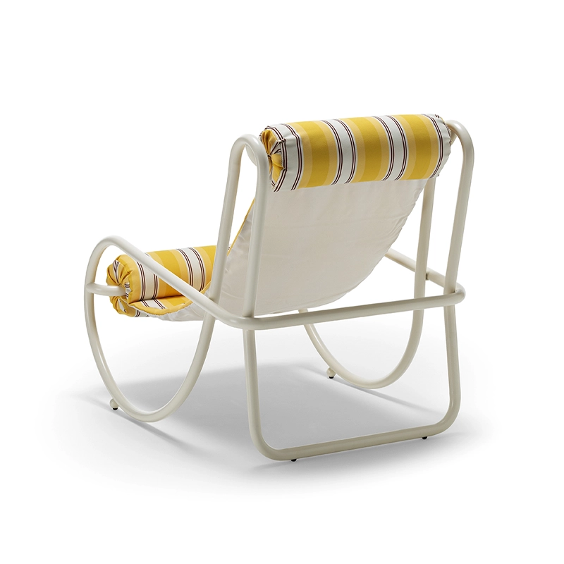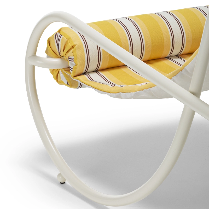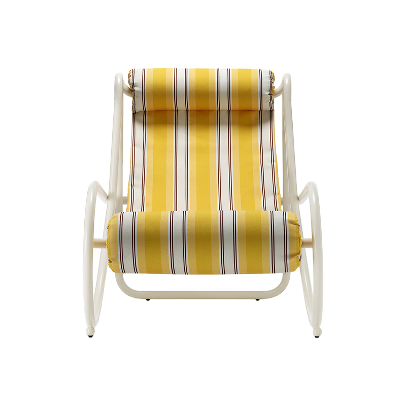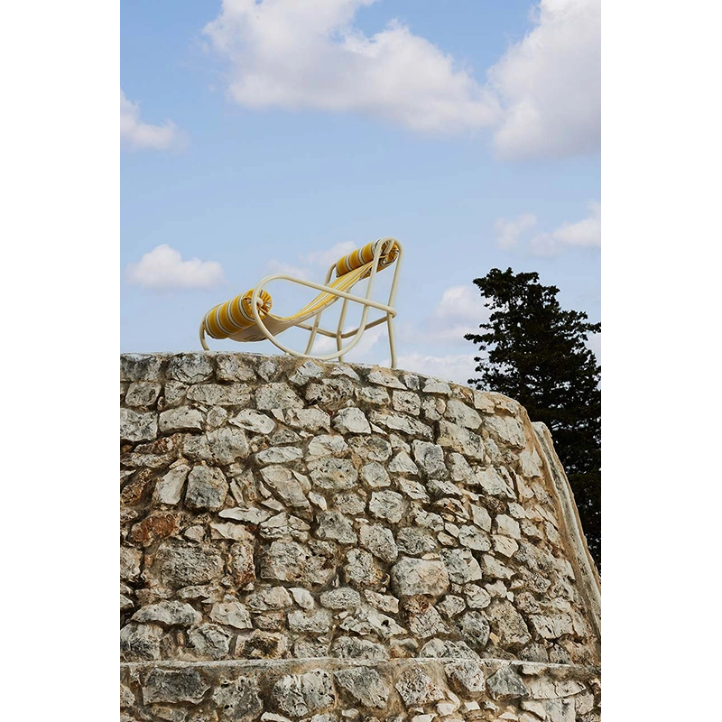 Le fauteuil Locus Solus est une réédition inédite par Exteta et Jacquemus du modèle créé en 1964 par la designer italienne Gae Aulenti. Ce fauteuil d'extérieur s'harmonise parfaitement avec les autres éléments de la collection Locus Solus et offre une élégance intemporelle à votre espace extérieur. La structure du fauteuil Locus Solus est en acier tubulaire inoxydable poudrée en beige. Ce processus garantit à la fois durabilité et résistance aux intempéries, faisant de cette pièce un choix idéal pour les environnements extérieurs. Le fauteuil outdoor Locus Solus, fruit de la collaboration entre Exteta et Jacquemus, incarne l'alliance réussie entre le design intemporel de Gae Aulenti et la créativité contemporaine apportée par Simon Porte Jacquemus par la création des tissus de revêtement : beige et rayures jaunes Como. Cette réédition du fauteuil Locus Solus offre non seulement une fonctionnalité exceptionnelle, mais aussi une esthétique colorée, vive et raffinée qui enrichira votre espace extérieur d'une touche de modernité et d'élégance.