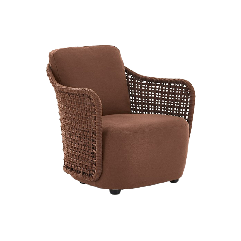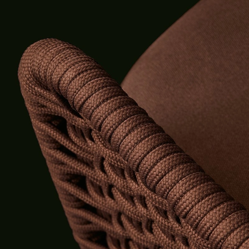 Dans la collection Mad Out de Marcel Wanders créée pour Poliform, le mobilier d’extérieur est interprété à travers des techniques d’entrelacement sophistiquées. Avec ses dimensions compactes et ses lignes enveloppantes, le fauteuil Mad Out se caractérise par son dossier en corde tressée à la main, comme le canapé du même nom : un détail suggestif et d’une grande sagesse technique.