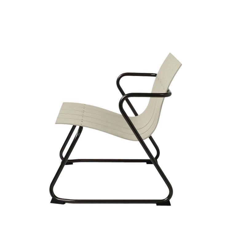 Editée par Mater, Ocean est une collection de meubles pour l’extérieur réalisés en filets de pêche. Créé à l’origine en 1955 par le célèbre couple danois, Nanna & Joergen Ditzel, le design a été réimaginé et réédité en utilisant des déchets plastiques trouvés dans les océans.  Composée de lattes qui se répètent et d’une base en métal, la collection Ocean se caractérise par sa structure légère, conçue et testée pour une utilisation extérieure. Cette conception représente une pensée innovante et durable, et soutient de nombreux objectifs de développement durable des Nations Unies. La collection Ocean Mater comprend une chaise, un banc, un fauteuil lounge, une table basse et deux tables de repas, tous déclinés en deux couleurs : noir et sable. Toutes les pièces de la collection Ocean peuvent être entièrement démontées, ce qui permet à chaque composant d’être recyclé dans de nouveaux cercles de production.  Des variations de finitions sont possibles, en raison de l’utilisation de matériaux recyclés.