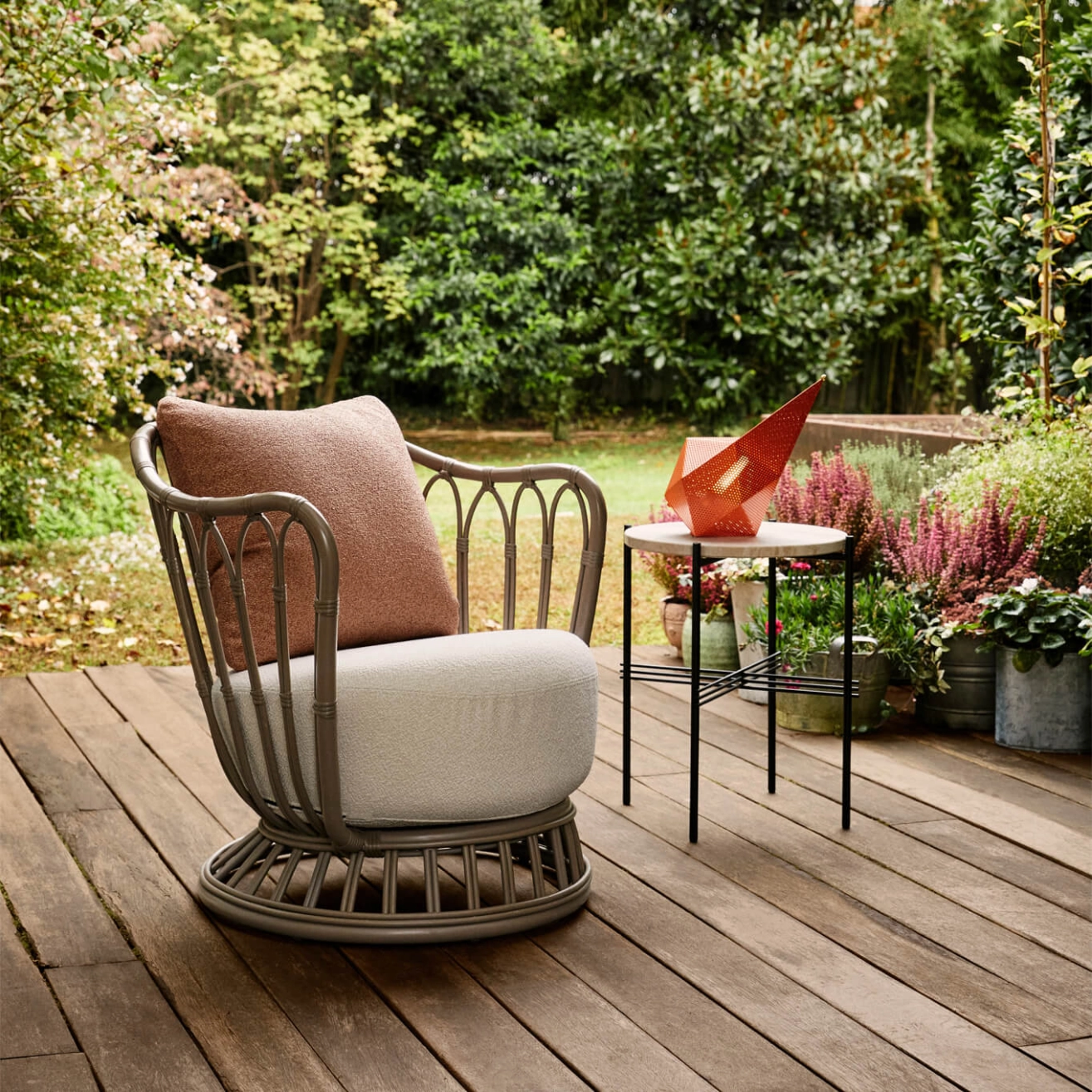Inspiré d'un croquis de Tove Kindt-Larsen de 1936, le fauteuil Grace est devenu une pièce phare de la collection Gubi. Cette nouvelle édition outdoor transpose sa beauté sculpturale et son esthétique inspirée de la nature dans les espaces extérieurs, avec une version modernisée en rotin synthétique fabriqué à partir d'aluminium thermolaqué et de fibres de polyéthylène. Léger, durable et polyvalent, le fauteuil d'extérieur Grace s'adapte parfaitement à l'intérieur comme à l'extérieur. Disponible en base noire, blanche ou grise, le fauteuil Grace est doté d'un coussin d'assise profond recouvert d'un tissu résistant aux intempéries pour une utilisation en extérieur.