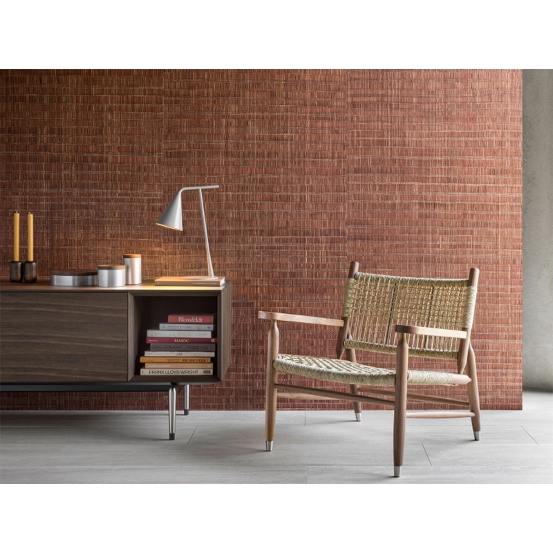 Chaque détail de construction du fauteuil Tessa révèle la grande complexité qui se cache derrière une apparente simplicité ; cette dernière n'est en revanche que le résultat de l'ingéniosité et du travail manuel, inhérent au concept du produit. La structure est entièrement réalisée en frêne massif ou en noyer canaletto tourné et les assemblages sont réalisés selon la tradition ; ce processus de fabrication nécessite un grand savoir-faire et exprime pleinement la matérialité poétique de ce matériau chaleureux et noble qu'est le bois. Le tressage léger et robuste de l'assise et du dossier est fait main en paille des marais, un art ancien qui remonte à la tradition rurale italienne. Des coussins moelleux en option fixés au moyen de rubans minimalistes font de Tessa un fauteuil encore plus accueillant. Editée par Flexform, la famille Tessa comprend un fauteuil avec accoudoirs, un pouf, un banc et une petite table dont le plateau en marbre est disponible en une variété de finitions.