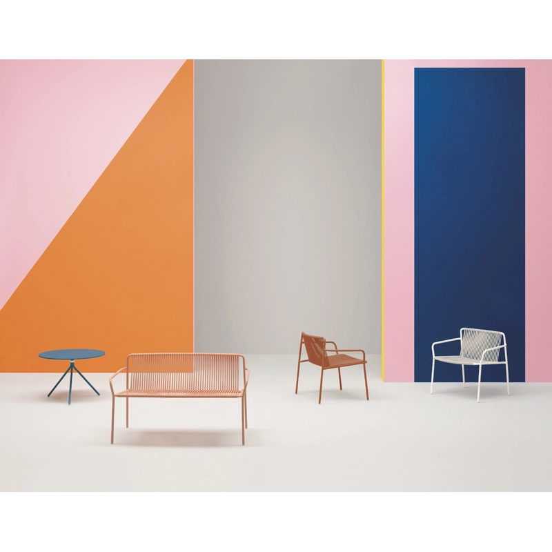 Editée par Pedrali, Tribeca est une réinterprétation moderne des chaises de terrasse classiques des années 60 en acier entrelacé. Le fauteuil Tribeca est doté d’une structure en tube Ø20mm peint pour l'extérieur. Le dossier et l’assise de Tribeca sont créés à partir d’un entrelacement de fil de PVC renforcé en Nylon. La technique et les matériaux utilisés ont permis de proposer un fauteuil à la fois confortable et léger. Spécialement conçu pour une utilisation en extérieur, le fauteuil lounge Tribeca de Pedrali peut être accompagné par la version banc pour créer un ensemble sur une terrasse.