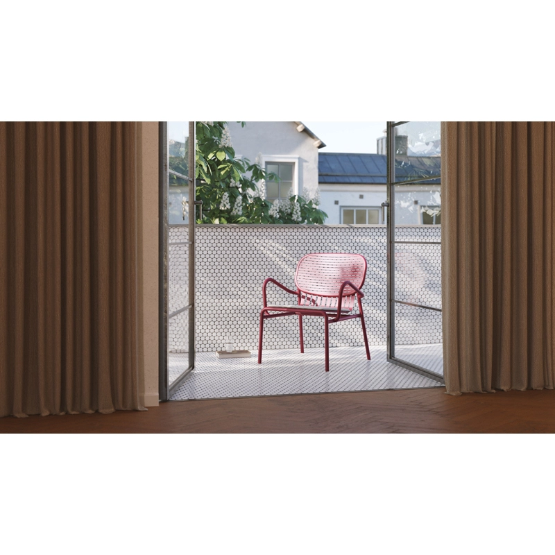 Avec Week-End, la marque française Petite Friture, pose son regard singulier sur l’été et propose avec le studio Brichet-Ziegler une approche graphique et contemporaine du mobilier de jardin. Celle-ci se joue d’un rythme de bandes horizontales et verticales posées avec habileté sur une structure aux lignes fortes. Les bandes de ce fauteuil qui caractérisent la collection Week-End éditée par Petite Friture, sont réalisées dans des feuilles d’aluminium découpées au laser en une seule pièce et non en lattes assemblées, permettent la suppression de vis ou de soudures inconfortables. Le travail des lattes horizontales et verticales comme des rayures, souligne les pleins et les vides, affirmant l’identité de la collection. La collection Week-End est une gamme de mobilier outdoor complète. Les couleurs précises sélectionnées pour cette collection marquent seules ou en combinaison les lignes d’horizon d’un balcon, d’une terrasse ou d’un jardin. Ce fauteuil est disponible en plusieurs couleurs comme le noir, jaune, vert jade … La mise en couleurs de la collection Week-end, de Petite Friture, en peinture poudre époxy anti-UV grainée garantit un maintien impeccable des teintes au cours du temps. Le fauteuil design proposé par Petite Friture, a été conçu avec l’obsession de tirer le meilleur parti des matériaux et des techniques de réalisation à la disposition des designers. Réalisée en aluminium, matériau sélectionné pour sa légèreté et sa résistance aux intempéries, la collection Week-End allie confort esthétique et sens pratique. En effet, cette collection est résolument pensée autour d’une utilisation pratique car toutes les assises sont empilables.