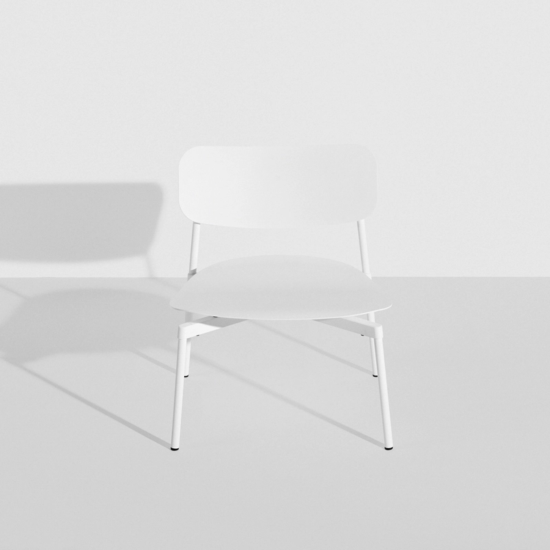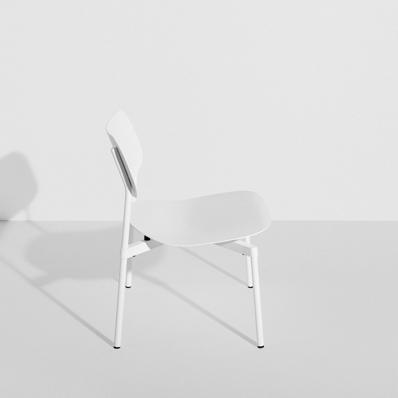 Editée par Petite Friture, Fromme est une collection de meubles en métal conçus pour l’extérieur, se distinguant par ses lignes pures et son caractère unique. Le fauteuil Fromme est un fauteuil lounge ergonomique, qui reprend les propriétés techniques de la selle de vélo grâce aux amortisseurs placés sous l’assise. Autre inspiration tirée du vélo de course : sa ligne pure et profilée, commune à toutes les pièces de la collection Fromme. Assemblage de pièces moulées sous pression puis profilées, et de tubes extrudés spécialement dessinés par Tom Chung pour cette collection, le fauteuil lounge extérieur bénéficie d’une structure légère et solide. Petite Friture pense ses produits dans une démarche durable et respectueuse de l’environnement, toute la collection est donc fabriquée dans une matière recyclable, l’aluminium. La collection Fromme offre plusieurs avantages fonctionnels : confort grâce à l’assise légèrement incurvée et aux amortisseurs placés sous le siège, usage indoor et outdoor grâce au choix de la fabrication en aluminium et d’une peinture matte grainée traitée anti-UV. Le fauteuil lounge extérieur Fromme est empilable par 4, résistant à l’eau et certifié pour un usage extérieur intensif.