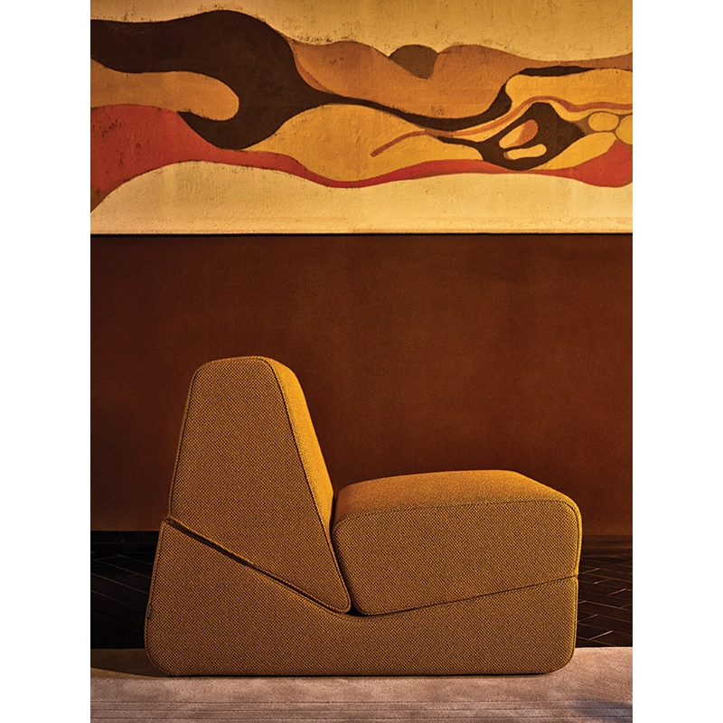 Convertible, accueillant et dynamique, le fauteuil Galeotta est composé de coussins rabattables, qui permettent de transformer le fauteuil en chaise-longue ou en Daybed. Il est réalisé entièrement en mousse de polyuréthane à densité variable et n’est équipé d’aucune structure ou mécanisme interne. Edité par Zanotta, le fauteuil Galeotta consiste en trois blocs géométriques avec un profil irréguliers pour créer trois configurations différentes. Le revêtement externe déhoussable maintient les trois éléments ensemble et leur permet de se rabattre. Galeotta est un fauteuil informel et polyvalent qui s’adapte à différentes exigences de confort et d’espace, idéal aussi bien à la maison que dans les espaces contract.