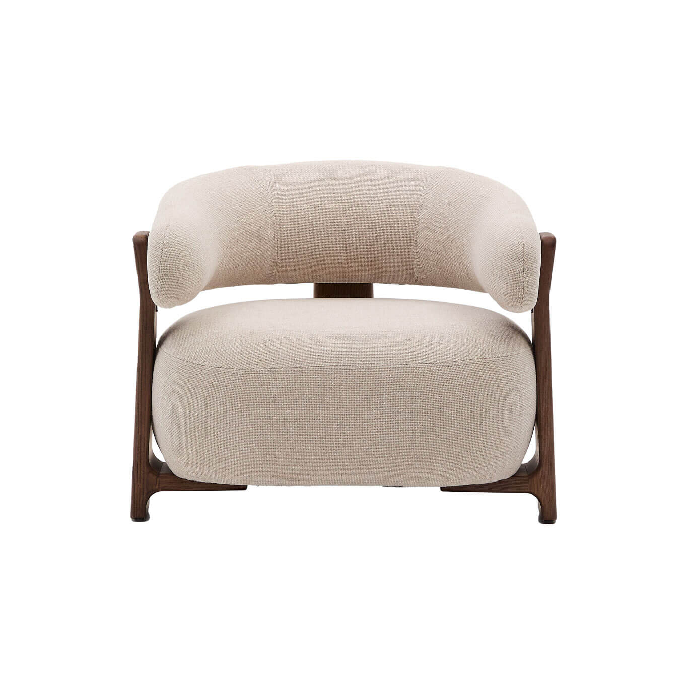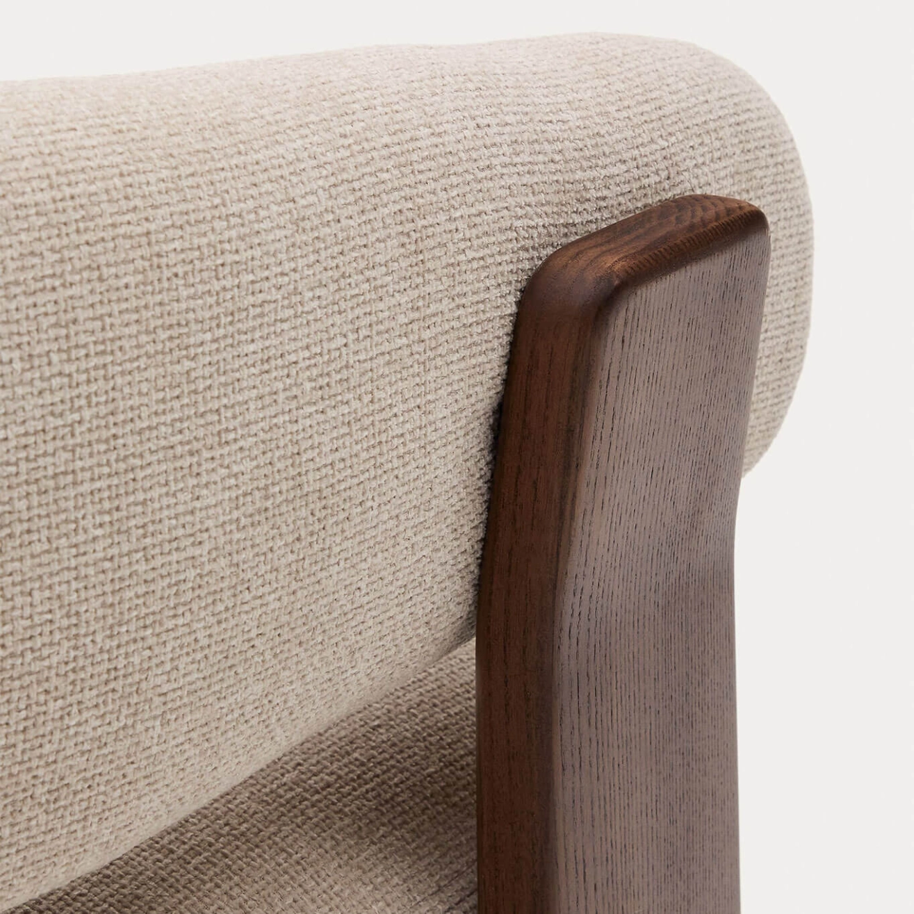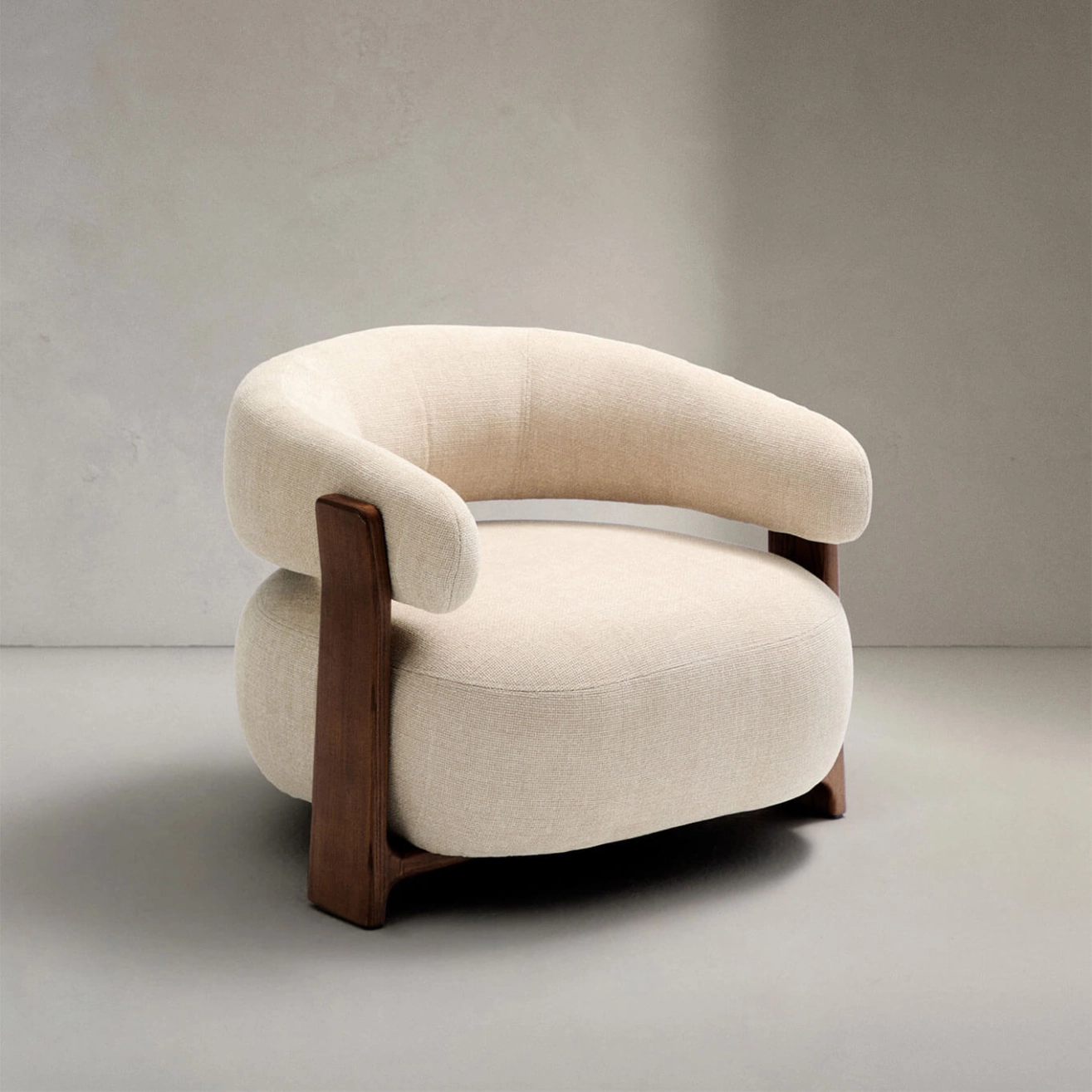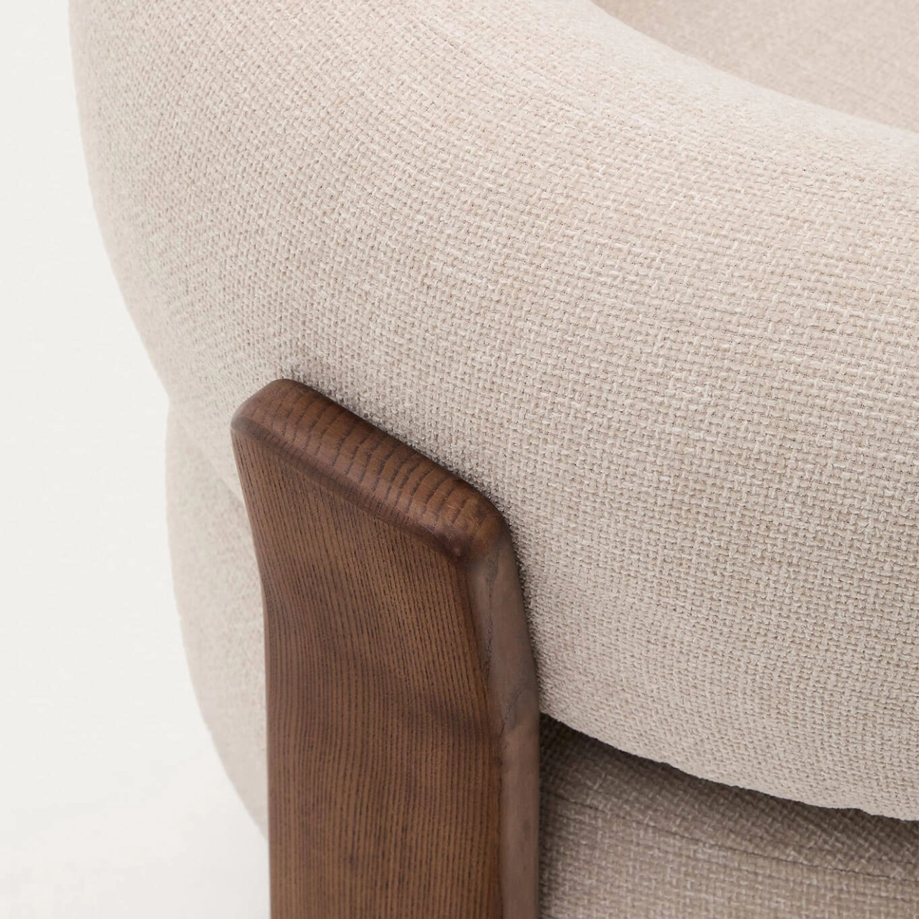 élégance intemporelle, inspirée du style scandinave des années 70, caractérisée par des formes généreuses, enveloppantes et stylisées. Son assise large et son dossier incurvé sont habillés d’un tissu chenille épais, au toucher doux et chaleureux, décliné dans une teinte subtilement nuancée. Ce tissu est composé de