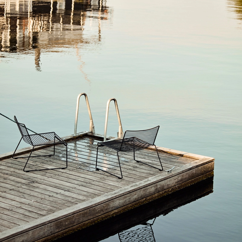 Avec son assise large et accueillante et sa faible hauteur, Hee Lounge est définitivement le modèle le plus décontracté de la série Hee. Bien que le design élémentaire se manifeste ici dans des proportions plus détendues, Hee Lounge conserve toujours la même esthétique légère et discrète ainsi que les aspects fonctionnels de la collection. Empilable et résistant aux intempéries, le fauteuil lounge Hee produit par Hay peut être utilisé à l'extérieur, ainsi qu'à l'intérieur, que ce soit à la maison ou dans des restaurants et des bars.