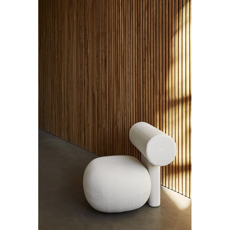 Caractérisé par des formes douces et ludiques, le fauteuil Hippo de Norr11 s'impose élégamment dans n'importe quel intérieur. Dans cette version, le profil qui relie l'assise et le dossier et également rembourré, apportant encore plus de douceur à l'ensemble. Hippo est proposé ici avec un tissu bouclé de grande qualité qui apporte une touche chaleureuse dans le salon.