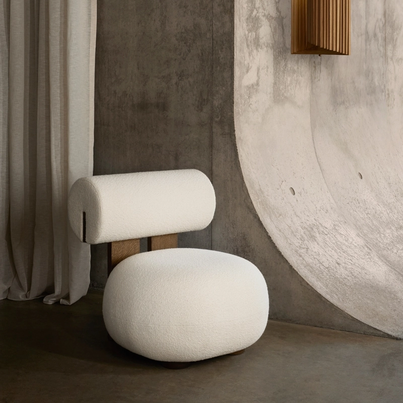 Caractérisé par des formes douces et ludiques, le fauteuil Hippo de Norr11 s'impose élégamment dans n'importe quel intérieur. Le fauteuil Hippo repose sur deux pieds robustes et un profil en bois reliant le siège et le dossier qui contraste avec les formes douces du fauteuil. Le profil caractéristique des pieds en bois est disponible en différentes finitions de chêne et s'associe à un tissu bouclé de grande qualité.