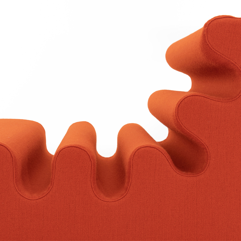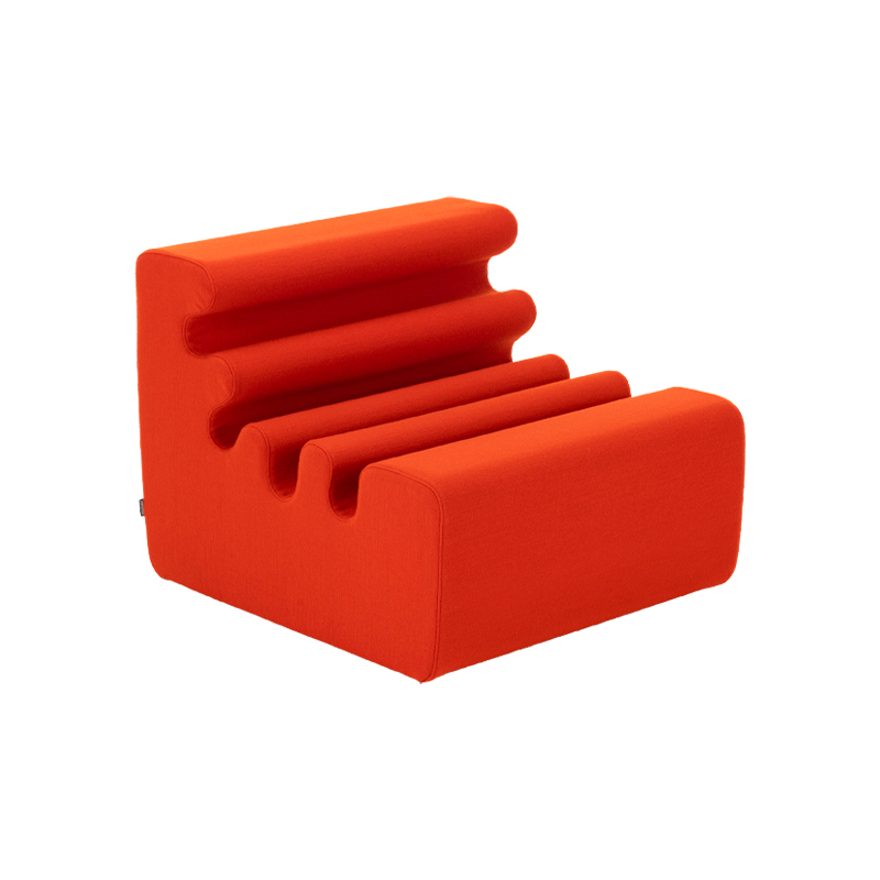 fauteuil Karelia se modernise avec une housse amovible en tissu Terso, disponible en couleur orange vif.