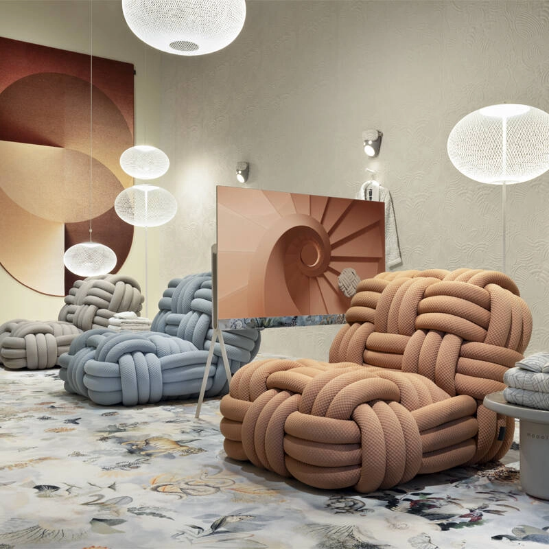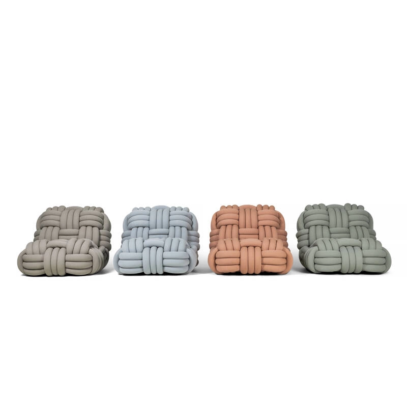 Pièce maitresse de la nouvelle collection MOOOI, le fauteuil Knitty de Nika Zupanc promet d’être un véritable sujet de conversation dans votre maison : ce fauteuil peut accrocher chaque regard à son design en fil extra-large, qui ressemble à une corde de bateau géante. Tissé autour d’une base solide, le fil entoure une armature épaisse qui garantit une sensation tactile inégalée. La combinaison unique d'échelle et de douceur du fauteuil Knitty invite à se laisser aller à une relaxation ultime.  Disponible dans quatre coloris, Knitty souligne l’ambiance chaleureuse et moderne de tous les salons et salles de réception avec une touche de confort.