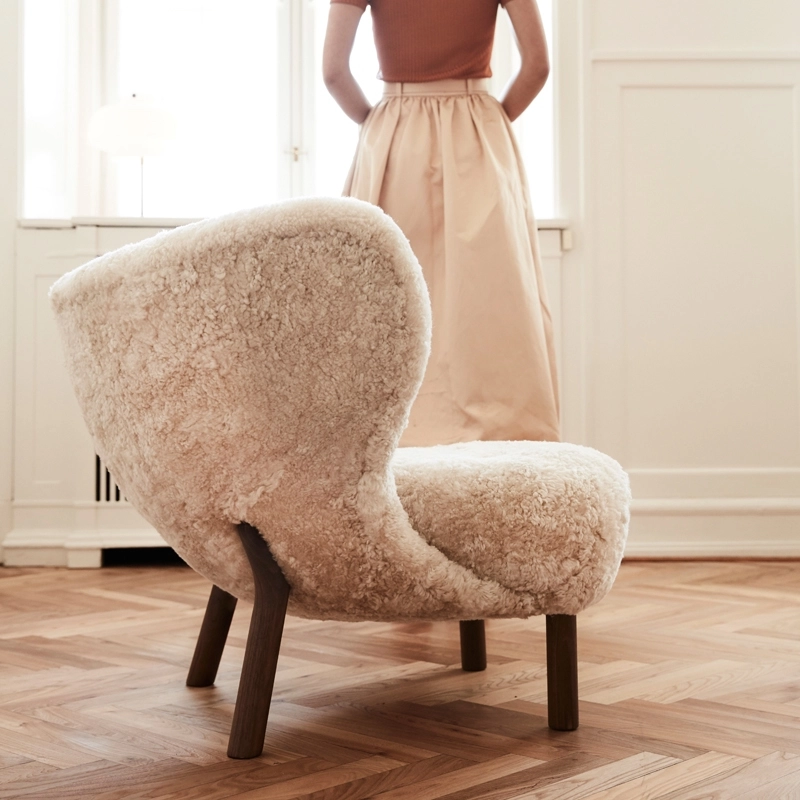 Peau de mouton, bois massif huilé