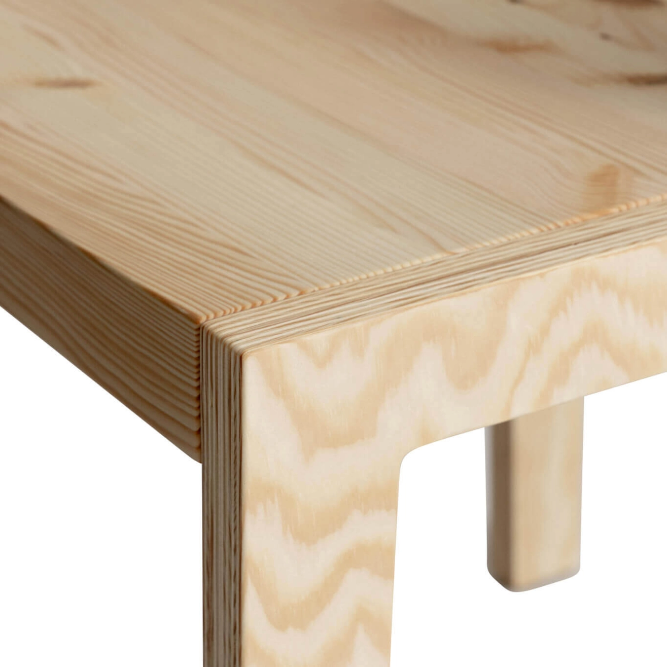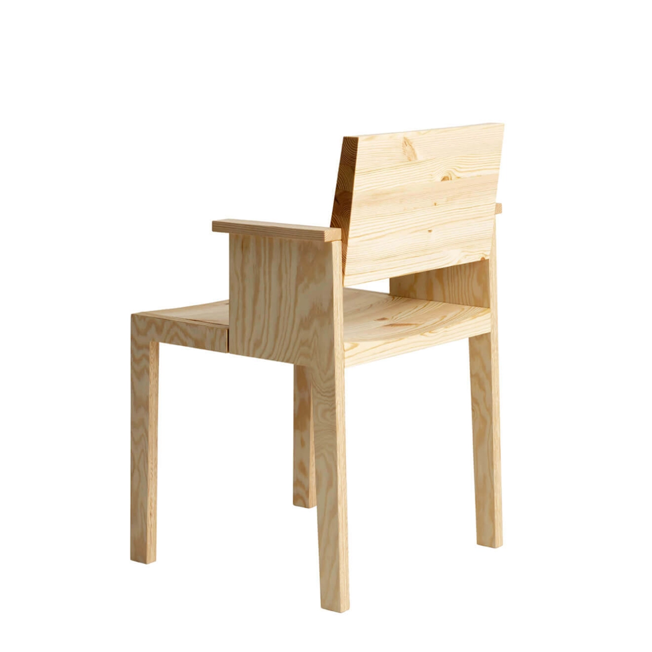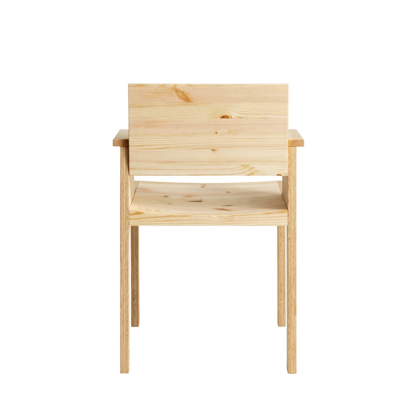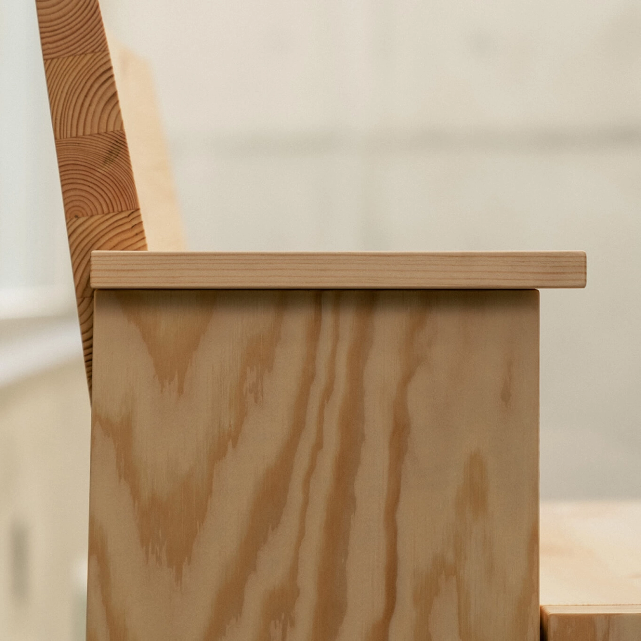 Le fauteuil Maasto, imaginé par Ronan Bouroullec pour Vaarnii, célèbre la beauté brute et l’authenticité du pin finlandais. Avec ses lignes sobres et son design sans compromis, il s’impose comme une pièce à la fois fonctionnelle et sculpturale, pensée pour un usage quotidien aussi bien à la maison que dans des lieux publics. Sa silhouette équilibrée associe des flancs en contreplaqué au veinage expressif, soigneusement travaillé pour allier robustesse, légèreté et simplicité de fabrication. L’assise et le dossier en bois massif garantissent à Maasto solidité et confort dans le temps. Ce fauteuil se distingue par son esthétique « hyper-pine », signature de Vaarnii, qui met en valeur les textures naturelles du bois dans une approche volontairement directe. Doté d'accoudoirs en contreplaqué, le fauteuil Maasto offre une ergonomie renforcée et une expérience d’assise confortable, tout en conservant une apparence épurée.