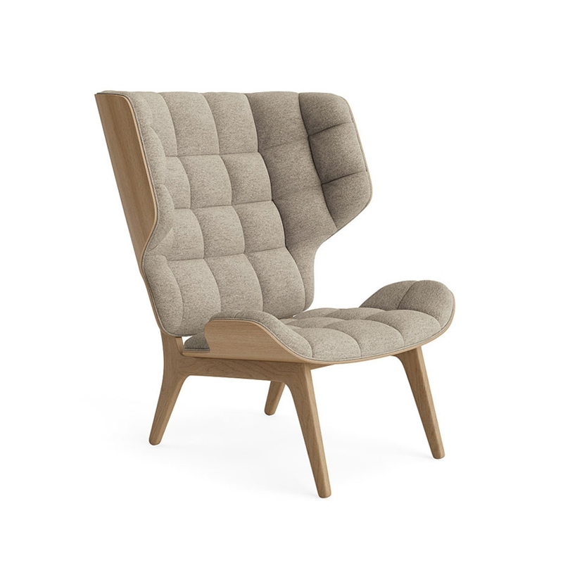 Mammoth de NORR11 est une bergère moderne et accueillante. Le dossier haut et enveloppant, ainsi que le rembourrage moelleux offrent un confort supérieur et un sentiment d'intimité. Le siège et le dossier sont formés à partir du même moule de compression, ce qui donne au fauteuil son look épuré et minimaliste. Le fauteuil Mammoth est disponible dans différentes combinaisons de bois et de tissus de grande qualité.