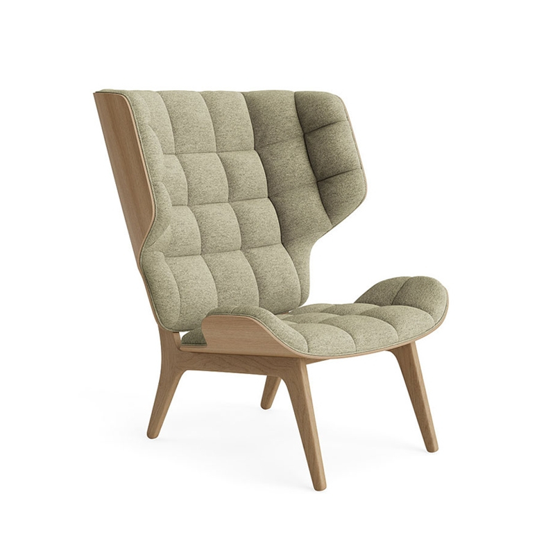 Mammoth de NORR11 est une bergère moderne et accueillante. Le dossier haut et enveloppant, ainsi que le rembourrage moelleux offrent un confort supérieur et un sentiment d'intimité. Le siège et le dossier sont formés à partir du même moule de compression, ce qui donne au fauteuil son look épuré et minimaliste. Le fauteuil Mammoth est disponible dans différentes combinaisons de bois et de tissus de grande qualité.