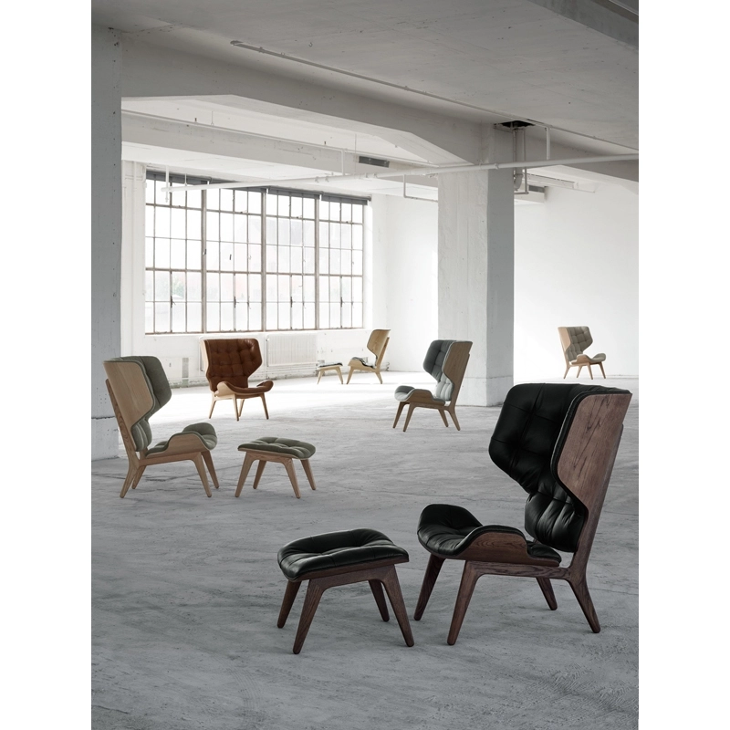 Mammoth de NORR11 est une bergère moderne et accueillante. Le dossier haut et enveloppant, ainsi que le rembourrage moelleux offrent un confort supérieur et un sentiment d'intimité. Le siège et le dossier sont formés à partir du même moule de compression, ce qui donne au fauteuil son look épuré et minimaliste. Le fauteuil Mammoth est disponible dans différentes combinaisons de bois et de tissus de grande qualité.