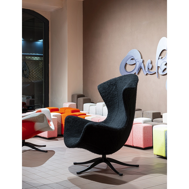 Avec One Page, le designer Ron Arad a créé un fauteuil sculptural, conçu comme un modelage fait à partir d’une seule feuille de papier. Edité par Moroso, ce magnifique fauteuil est constitué d’une “feuille” en polyuréthane qui remplit un double rôle en tant que structure porteuse rigide externe et rembourrage interne flexible. Le résultat est un fauteuil très confortable malgré l’absence de coussins et de rembourrage, un objectif essentiel de ce projet de recherche ergonomique. Le procédé de fabrication spécial superpose une forme moulée souple et flexible sur un cadre rigide, éliminant le besoin d’un rembourrage traditionnel comme source de confort. Conçu pour le espaces privés ou publics, le fauteuil One Page possède une base pivotante à cinq branches en aluminium moulé sous pression et est disponible avec ou sans mécanisme inclinable. Le repose-pieds est fabriqué avec une technologie de production similaire pour étendre le concept de feuille qui inspire le fauteuil.