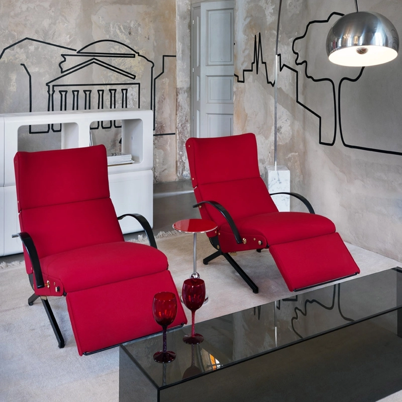 Dès 1954, Osvaldo Borsani décide de développer technologiquement le potentiel de la chaise longue classique, déjà proposée par les architectes les plus célèbres du Mouvement moderne, en essayant d'aller au-delà du « fauteuil de repos » classique, fixe et encombrant. Le résultat est un fauteuil aux dimensions plus réduites mais qui, grâce à un système d'inclinaison à éventail, peut accueillir le corps des positions les plus étendues jusqu'à se fermer complètement, dans un grand nombre de positions. Edité par Tecno, le P40 est ainsi un fauteuil de relaxation à éléments mobiles, composé d'un piédestal métallique qui supporte l'assise et le dossier axés de manière à permettre toutes les inclinaisons, un élément rabattable sous le siège complète le plan d'appui, un repose-pied coulissant en métal et des accoudoirs en acier et caoutchouc.