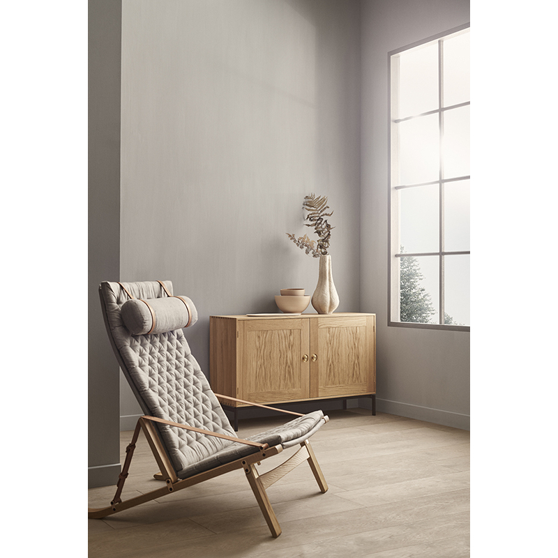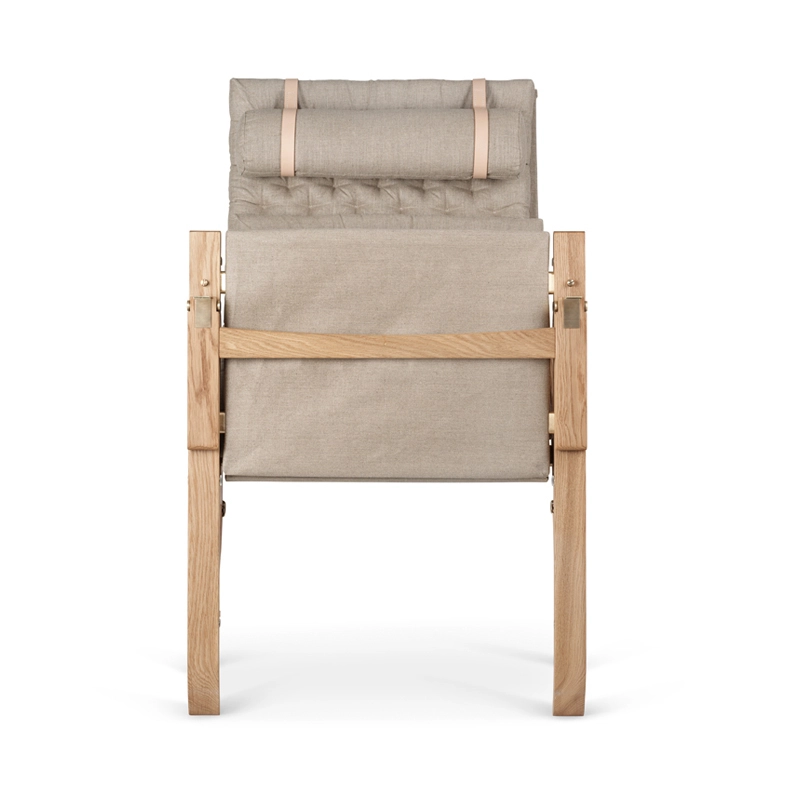 Lors de la conception de Plico pour la marque Carl Hansen, le duo de designers danois Preben Fabricius et Jørgen Kastholm a cherché à créer un fauteuil qui prend le moins de place possible lorsqu’il n'est pas utilisé, sans compromettre le confort. Cherchant à mettre en valeur ce que d'autres designers cherchent souvent à cacher, ils ont créé un design d'une simplicité trompeuse avec des joints visibles, de beaux raccords en laiton et un savoir-faire accompli. La structure de Plico en chêne massif et les pieds arrière incurvés sont conçus pour une stabilité optimale. Le dossier et l'assise, équipés des coussins, sont recouverts de toile de lin, offrant une expression élégante et un confort d'assise ultime. Le dossier réglable se replie complètement et les accoudoirs en cuir de sellier complètent le design, lui donnant une expression distinctive pleine de caractère.