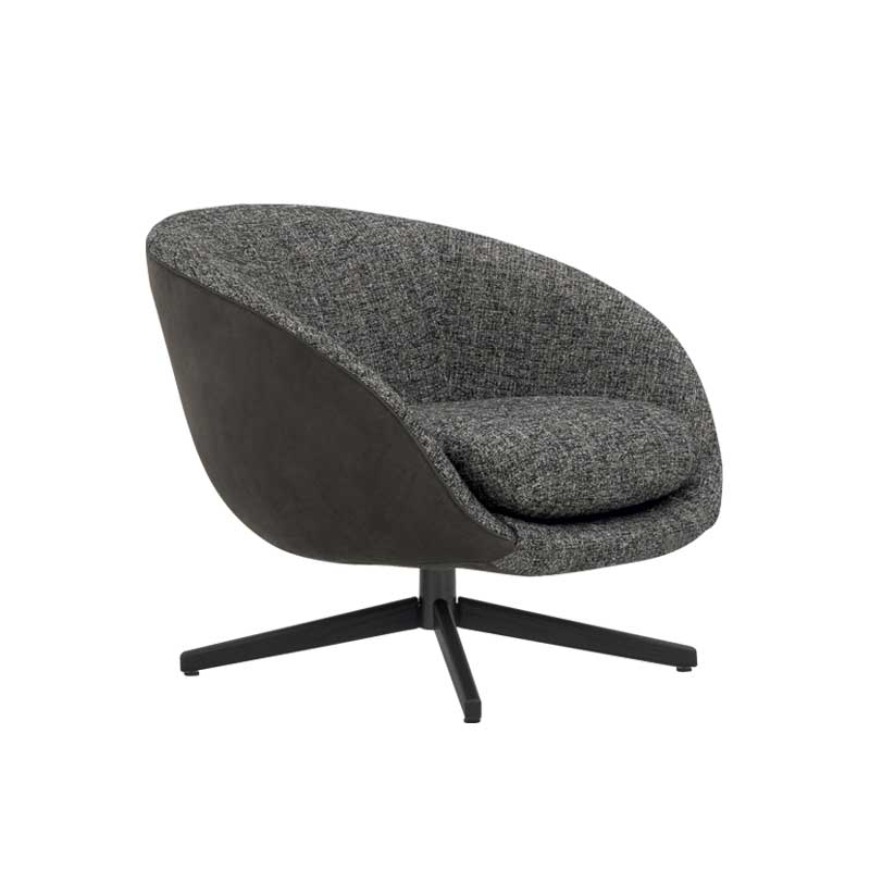 Clin d’oeil au style des années cinquante, la famille de sièges Russell, dessinée par Rodolfo Dordoni pour Minotti, se décline dans une large variété de modèles : fauteuil enveloppant, élégants fauteuils de salon et de salle à manger, bergère, canapé à la silhouette moelleuse et pouf. La forme de la collection Russell reprend des lignes vintages en les actualisant avec les finitions extrêmement sophistiquées des coussins et du dossier pouvant être recouvert de tissu ou de cuir pour un élégant dialogue entre les textures. La base fixe surprend par sa forme de croix en métal couleur Bronze Clair aux pieds gainés aux essence de chêne couleur Moka. Un détail chez Russell qui reflète la virtuosité de Minotti à combiner des matériaux divers, travaillés avec le savoir-faire hérité de la tradition artisanale de la compagnie. Les sièges Russell trouveront parfaitement leur place au sein d'un foyer et s'adapteront à merveille pour l'aménagement d'un environnement professionnel en recherche d'une touche d'authenticité.