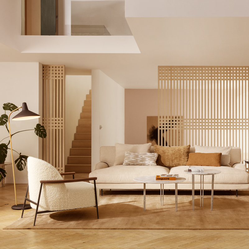 Conçu par le duo danois-italien GamFratesi, le fauteuil Séjour porte les contrastes finement équilibrés qui caractérisent leurs collaborations : doux avec dur, chaud avec frais, poids avec légèreté. L'interaction tactile des accoudoirs en bois, du cadre en laiton et du tissu de grande qualité confère au fauteuil une personnalité riche et attrayante. Séjour fonctionne particulièrement bien en paire, donnant l'impression d'être en conversation l'un avec l'autre.
