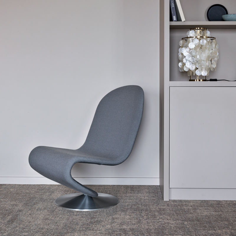 Créée par Verner Panton en 1973, System 1-2-3 est une collection de sièges au caractère fort avec une attention particulière portée au confort et à la convivialité. Avec sa silhouette en S sur son piètement pivotant, System 1-2-3 est une pièce design qui se démarque dans tous les environnements. Sa base ronde en aluminium brossé assure une stabilité parfaite. Ses courbes dynamiques et son illusion de flottement en font un fauteuil élégant et très moderne.