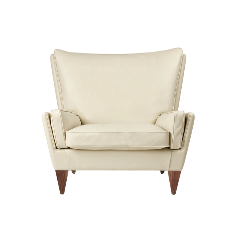 Le fauteuil V11 est exemplaire en termes de savoir-faire et de forme distinctive, avec un corps trapézoïdal repris dans ses pieds pyramidaux inversés en bois massif. Malgré ces angles apparemment aigus, le V11 est conçu pour le confort, illustrant parfaitement la conviction de son créateur, selon laquelle les sièges doivent s'adapter à toutes les positions assises. Soigneusement recréé par Gubi, le fauteuilV11 est certifié FSC et disponible dans plusieurs options de revêtement, démontrant la polyvalence esthétique du design.