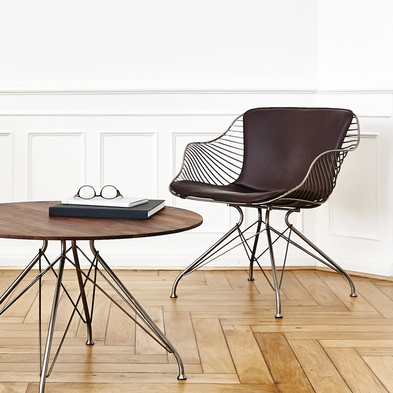 Editée par Overgaard & Dyrman, Wire est une collection de sièges qui tire son inspiration de la fabrication traditionnelle de selles pour chevaux et du travail du métal, et explore les contrastes entre ces deux matériaux nobles. Le fauteuil lounge Wire est composé d’une structure en acier, disponible en finition chrome satiné ou époxy noir, et d’une assise en cuir aniline, doté d’une texture naturelle qui se patine joliment avec le temps. Ce siège design se démarque par l’équilibre parfait entre fonctionnalité, ergonomie et artisanat. La collection Wire est fabriquée au Danemark par des artisans qualifiés et dévoués, qui maîtrisent un savoir-faire remarquable dans toutes les étapes de production.