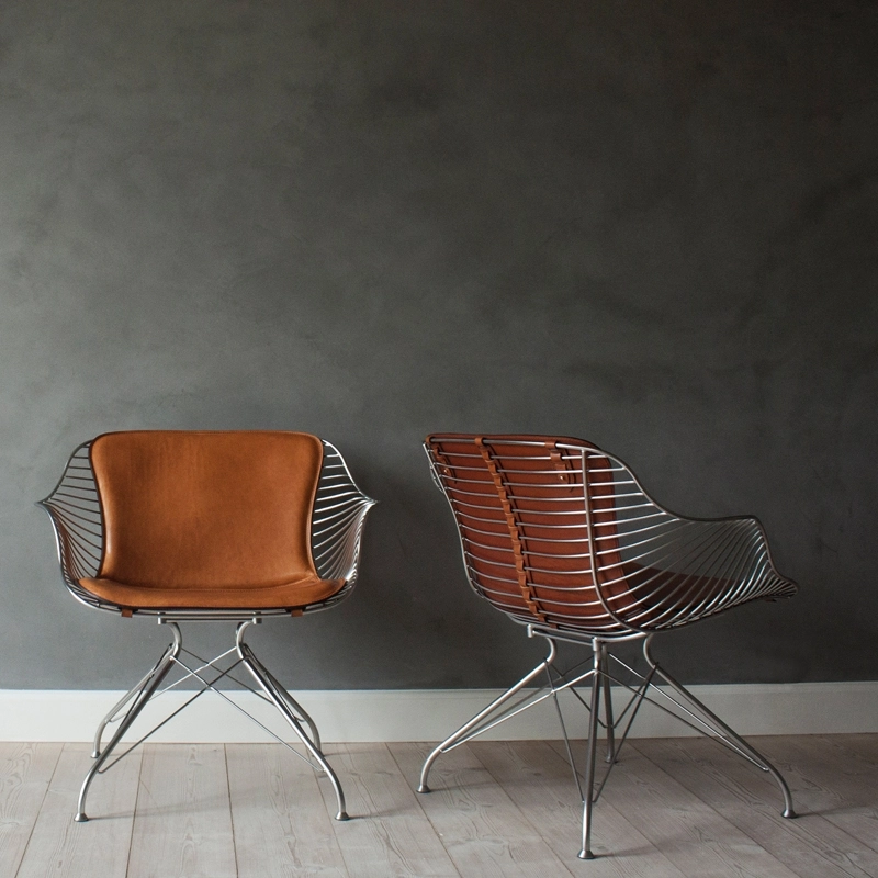 Editée par Overgaard & Dyrman, Wire est une collection de sièges qui tire son inspiration de la fabrication traditionnelle de selles pour chevaux et du travail du métal, et explore les contrastes entre ces deux matériaux nobles. Le fauteuil lounge Wire est composé d’une structure en acier, disponible en finition chrome satiné ou époxy noir, et d’une assise en cuir aniline, doté d’une texture naturelle qui se patine joliment avec le temps. Ce siège design se démarque par l’équilibre parfait entre fonctionnalité, ergonomie et artisanat. La collection Wire est fabriquée au Danemark par des artisans qualifiés et dévoués, qui maîtrisent un savoir-faire remarquable dans toutes les étapes de production.