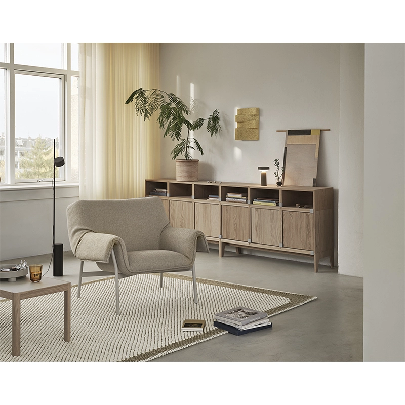 fauteuil Wrap de Muuto est constitué d'une coque enveloppée d'un textile semblable à une couverture, procurant un véritable sentiment de confort tout en gardant un caractère fort.